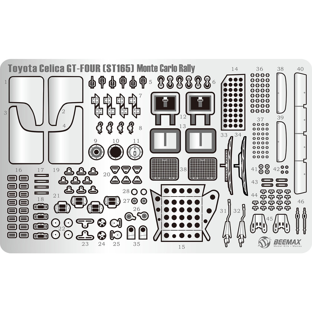プラッツ/BEEMAXの1/24トヨタ セリカ GT-FOUR ST165 ラリーのキットをディテールアップするパーツのセットです。