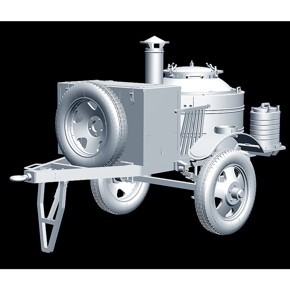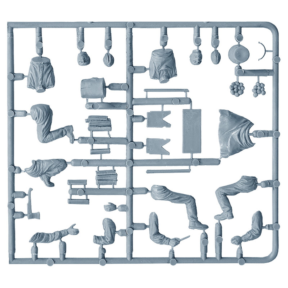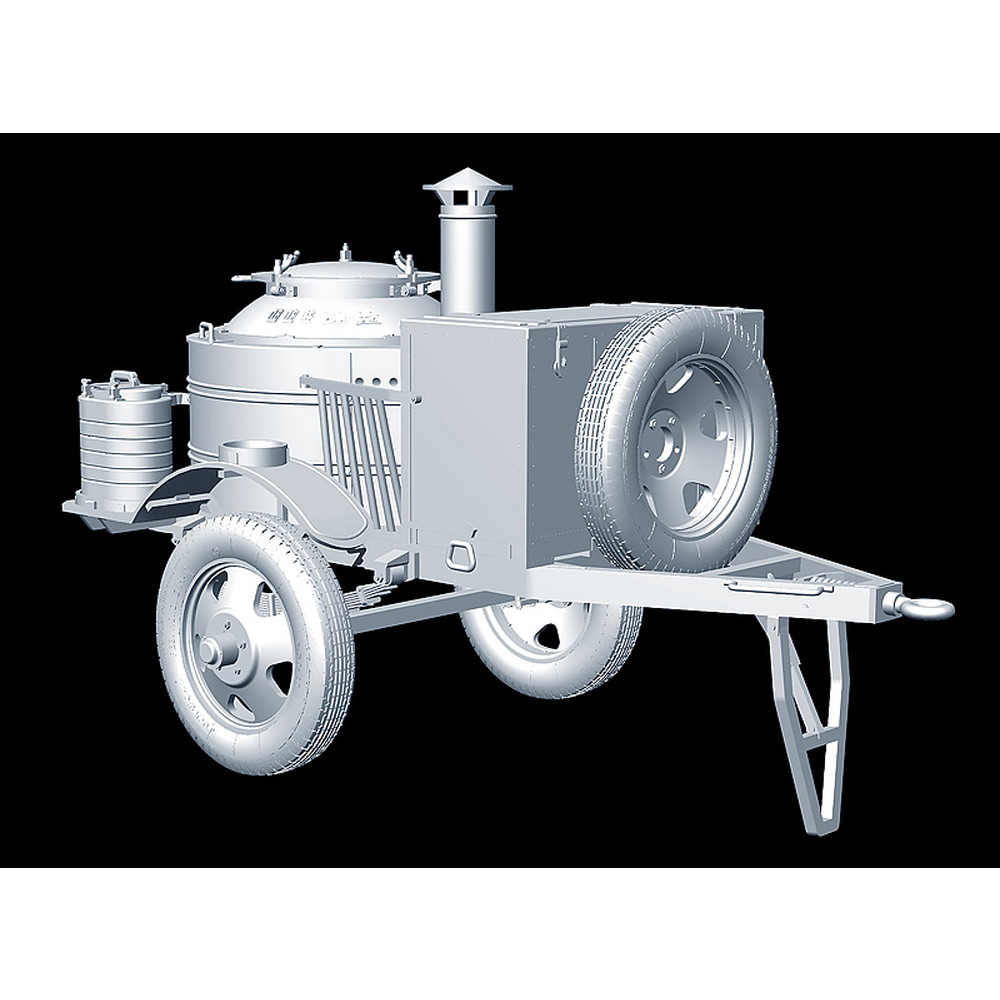セットには、フィールドキッチンのモデルと4つのフィギュアが含まれています。