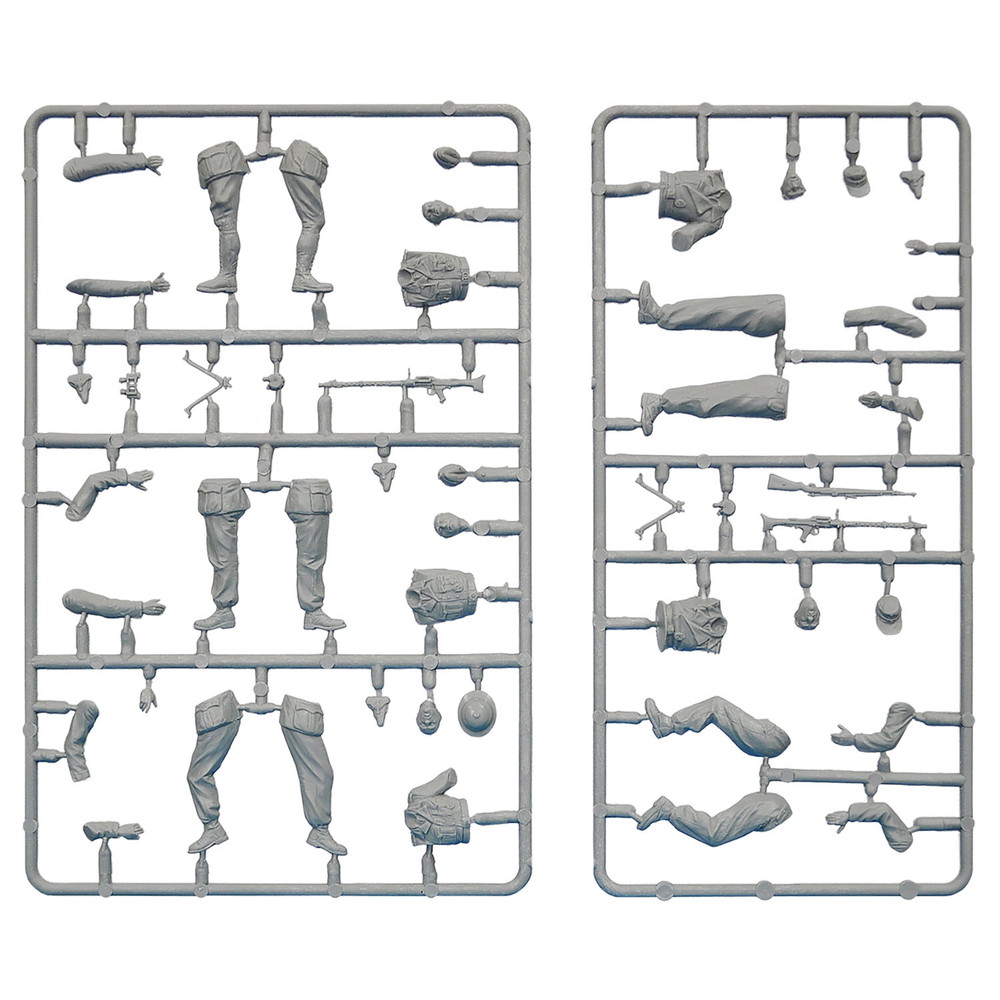 セットにはドイツ軍兵士の未組み立て・未塗装のフィギュア5体が含まれています。