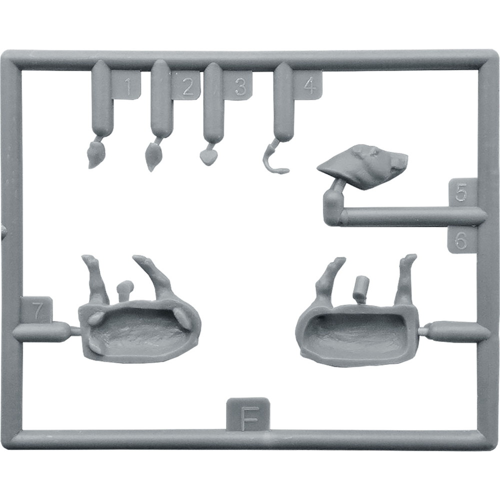 セットには43点のパーツが入っており、フィギュアの未塗装モデル5体とブタ1体を組み立てることができます。