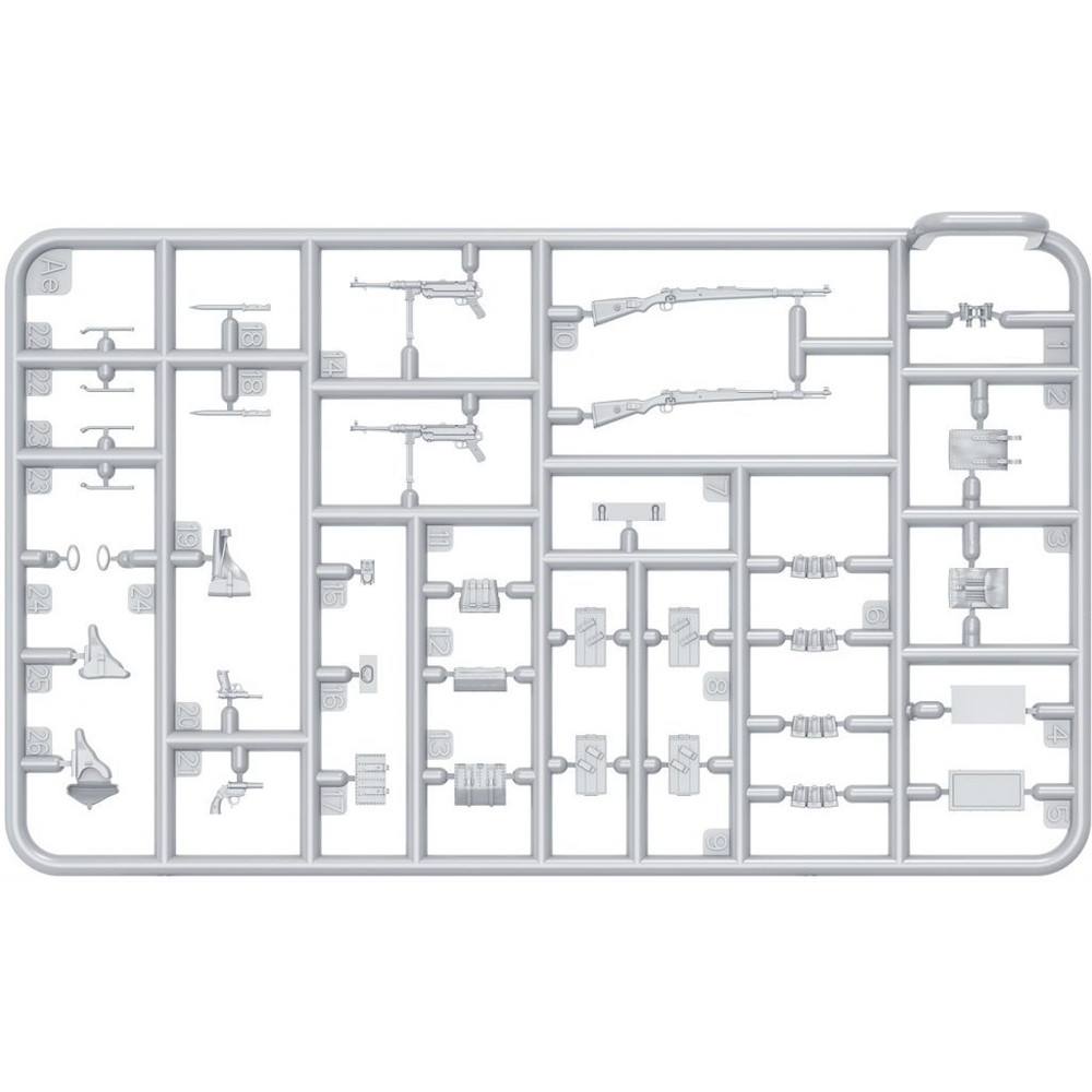 セットには、ドイツ軍乗組員の武器と装備の未組み立て、未塗装のフィギュア5体が含まれています。