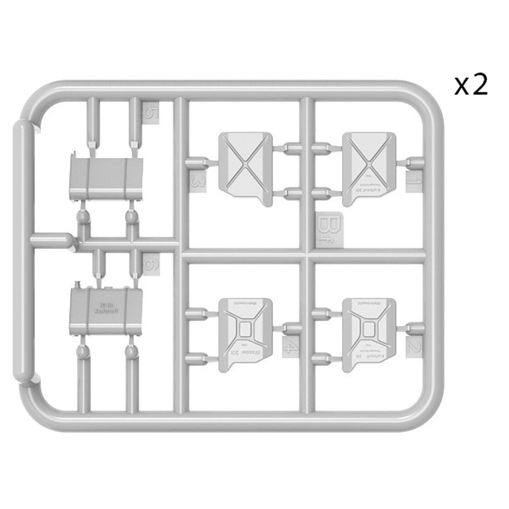 セット内容は未塗装・未塗装のフィギュア2体と缶8缶です。