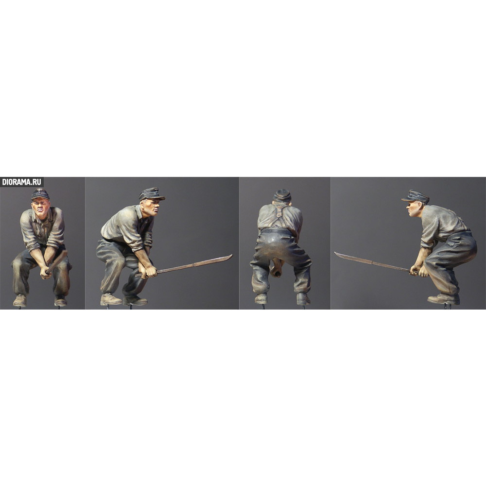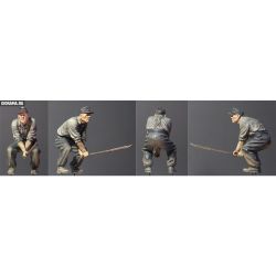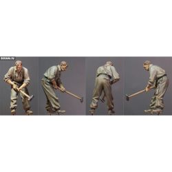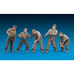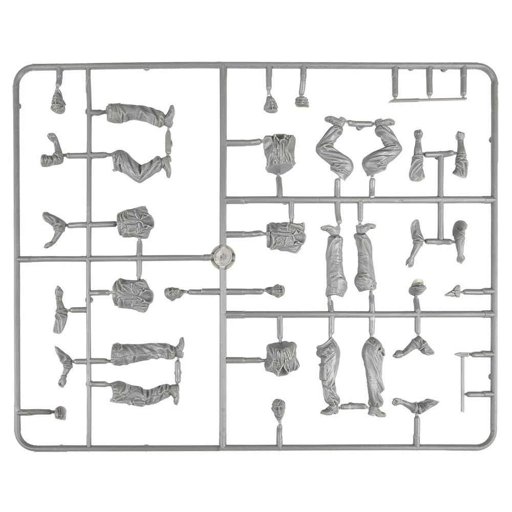 キットには、ドイツ軍戦車兵の組み立て不可能なフィギュア5体と作業工具が含まれています。