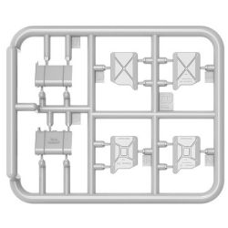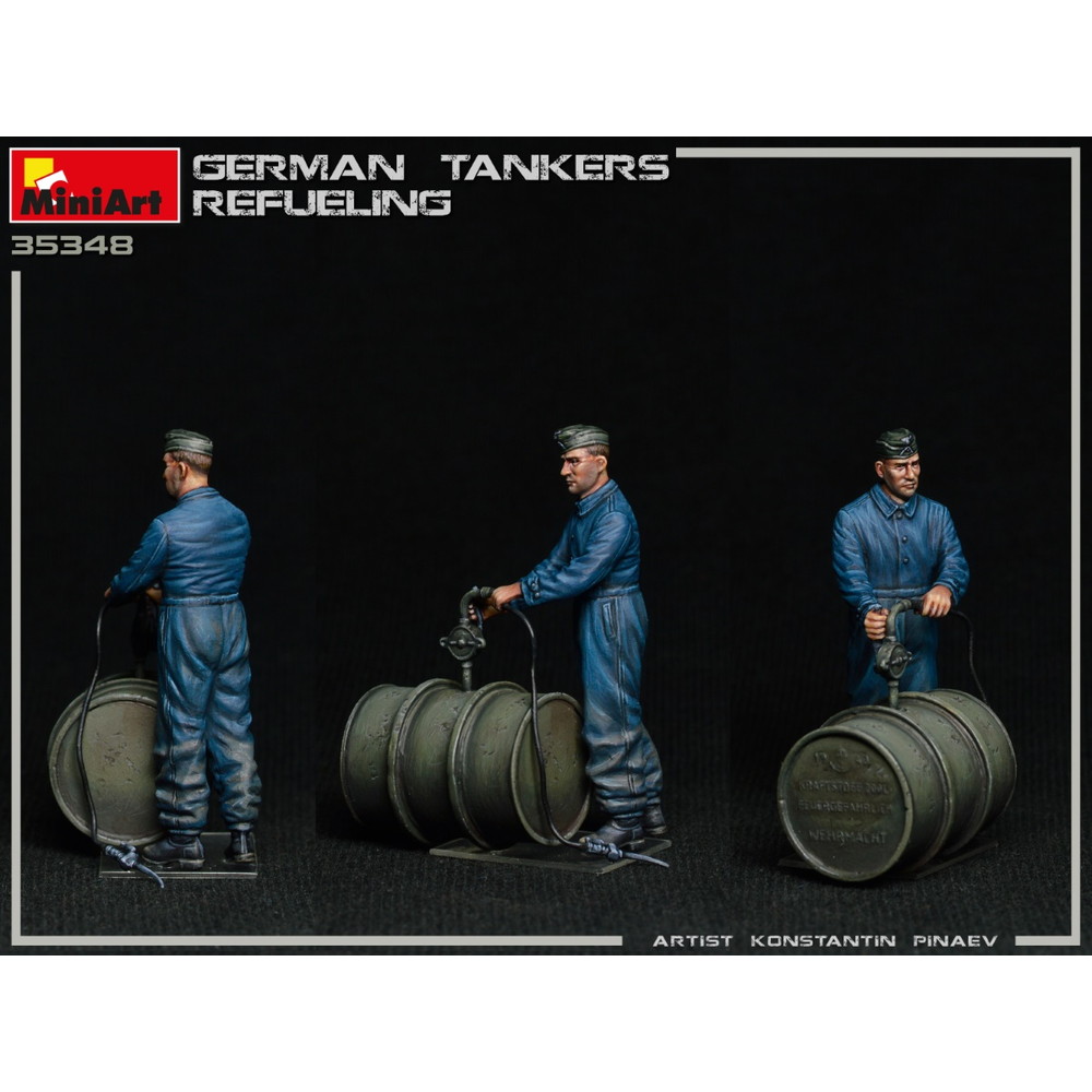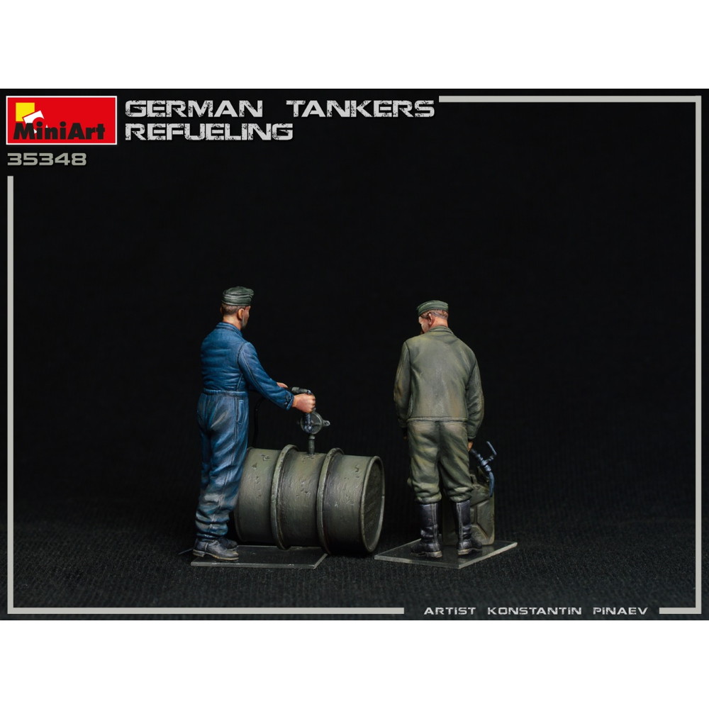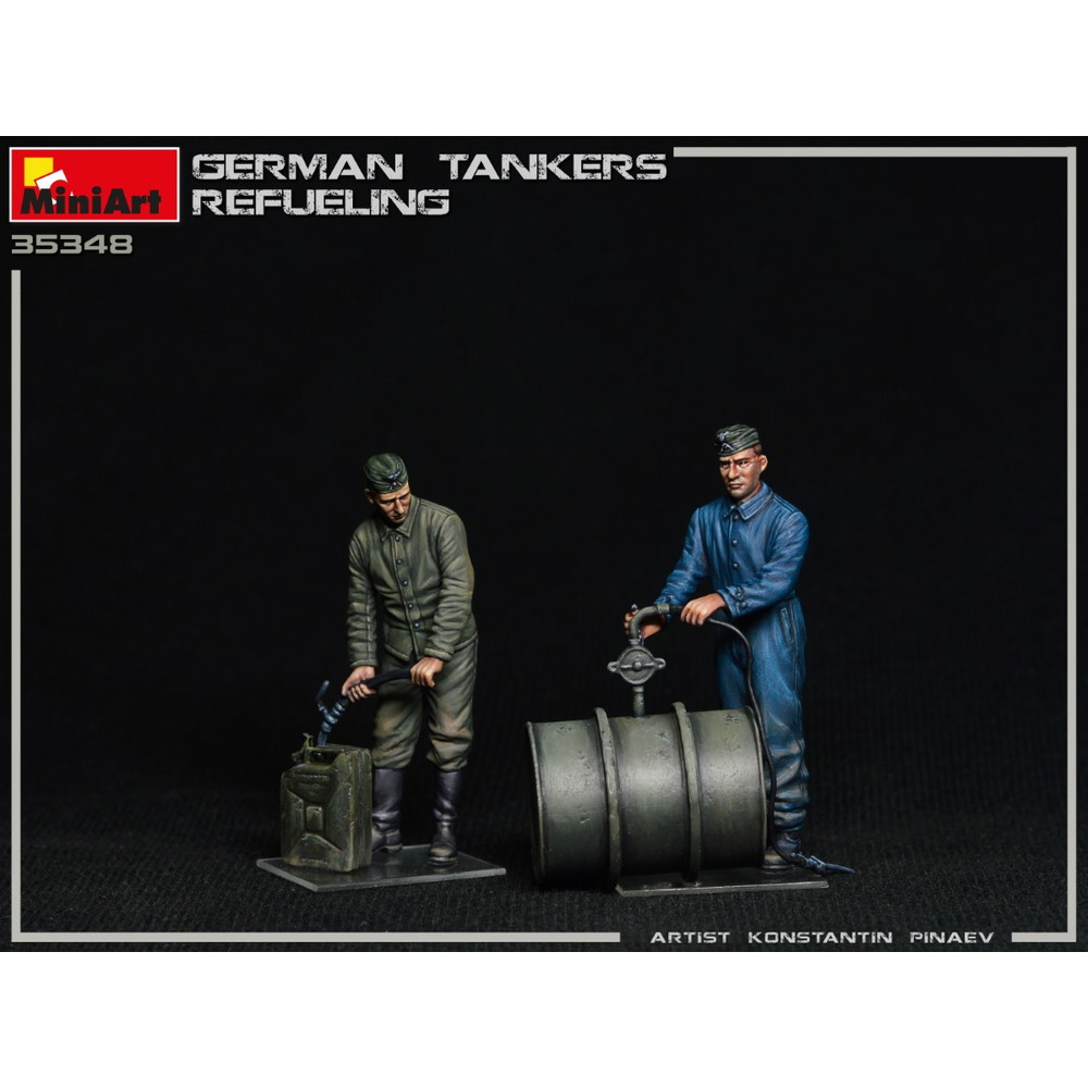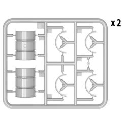 セットには、組み立てられていない未塗装のフィギュア2体、ドラム缶2個、缶4個が含まれています。