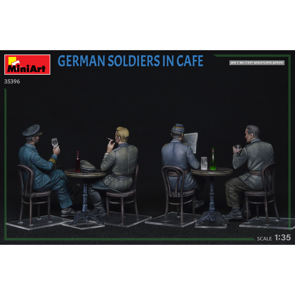 キット フィギュア4体、テーブル2脚、椅子4脚のモデルが含まれています。