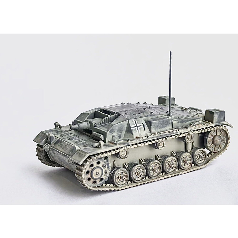 モデルは第二次世界大戦で活躍したドイツIII号突撃砲の初期生産型、A型を再現した1/72スケールのプラスチックモデル組み立て塗装済み完成モデルです。