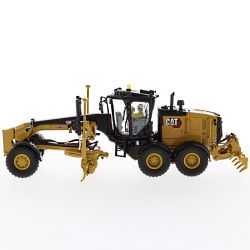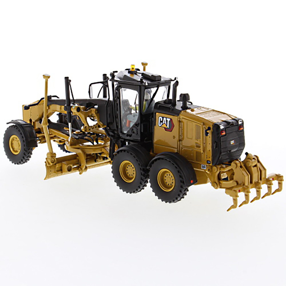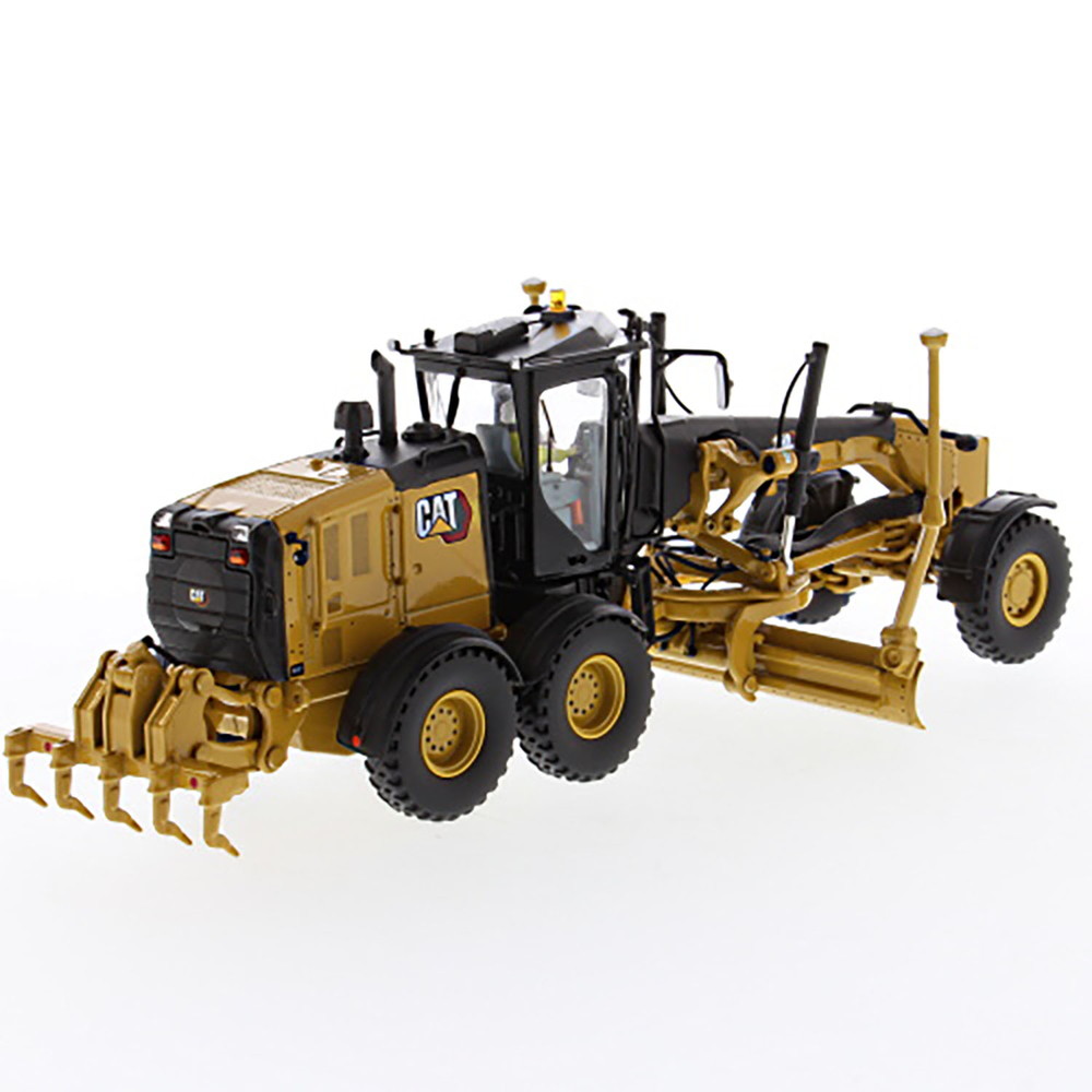 Cat Modern Hexと呼ばれるロゴは赤の六角形とグリルパターンの組み合わせが特徴です。モーターグレーダならではの独特なフレーム構造やブレードの配置など各部の形状やメカニズムも実感たっぷりに再現。