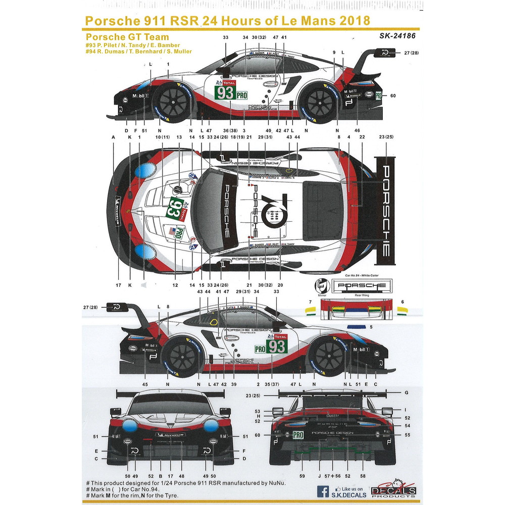 このセットは1/24スケールのプラッツ/nunu ポルシェ911(タイプ911)RSR 2018キット用デカールのセットです。