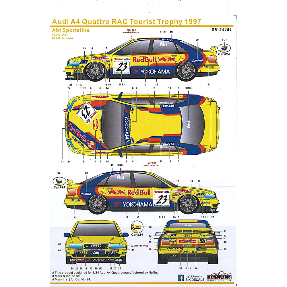 このセットは1/24スケールのプラッツ/nunu アウディ A4 クワトロ 1996 BTCCチャンピオンキットキット用デカールのセットです。