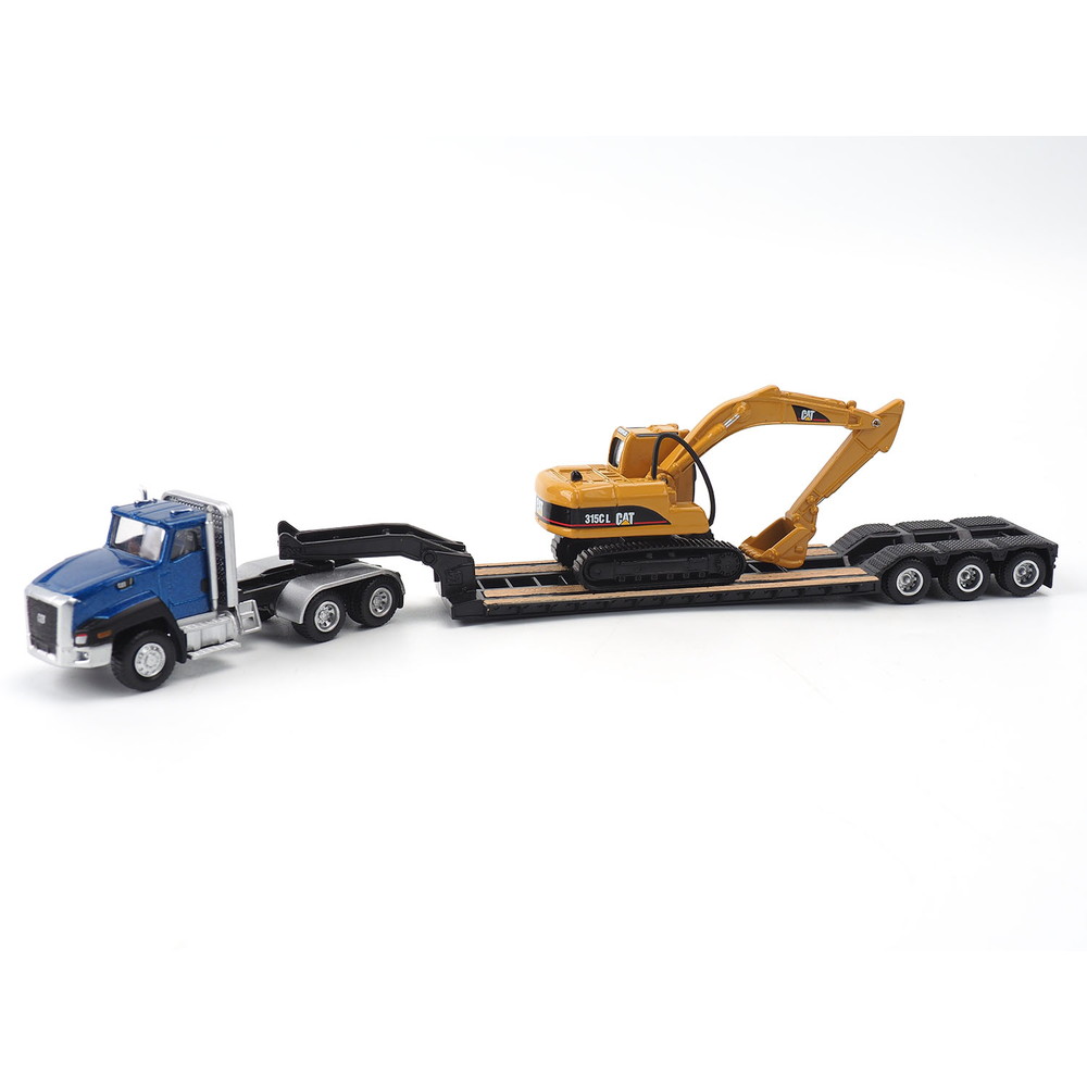 くわえて、このセットでは低床タイプのグースネックトレーラ、ローボーイを組み合わせ、さらに、その上に搭載する油圧ショベル、CAT 315CLをそれぞれ同じ1/87スケールで再現してセットしています。