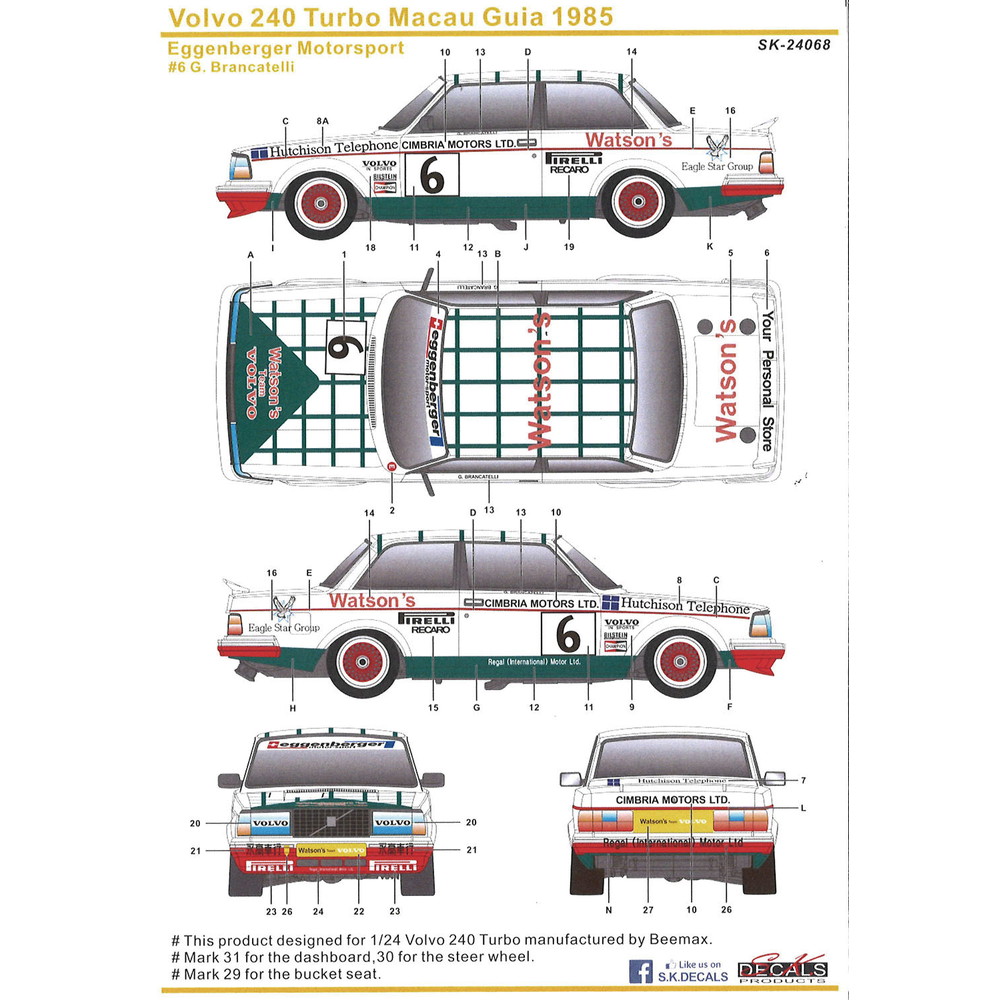 加えて、このセットには1985年のマカオギアレースに参加したエッゲンバーガーチームのデカールが付属しています。