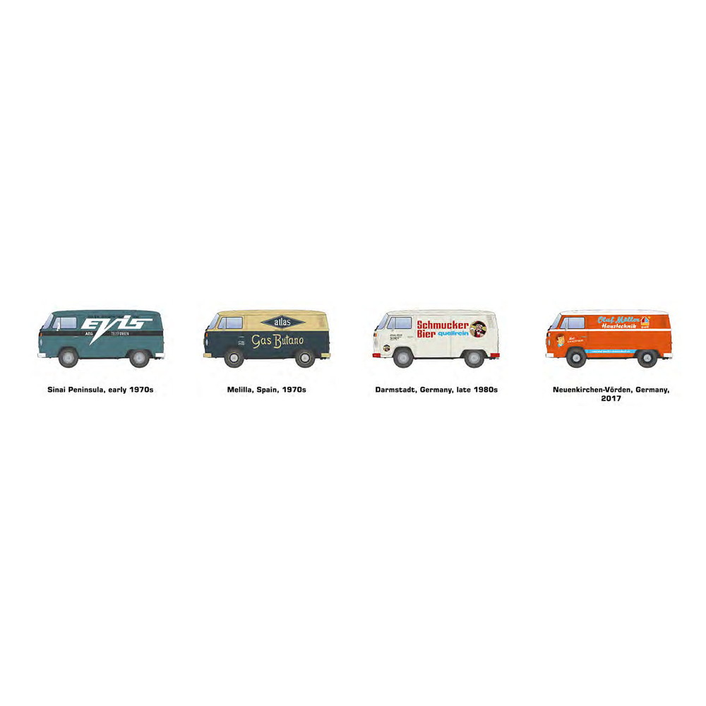 4種類のマーキングはカルトグラフ社製のデカールでセット。1970年から2017年の車両など、年代を追った商用バンのマーキングが注目です。