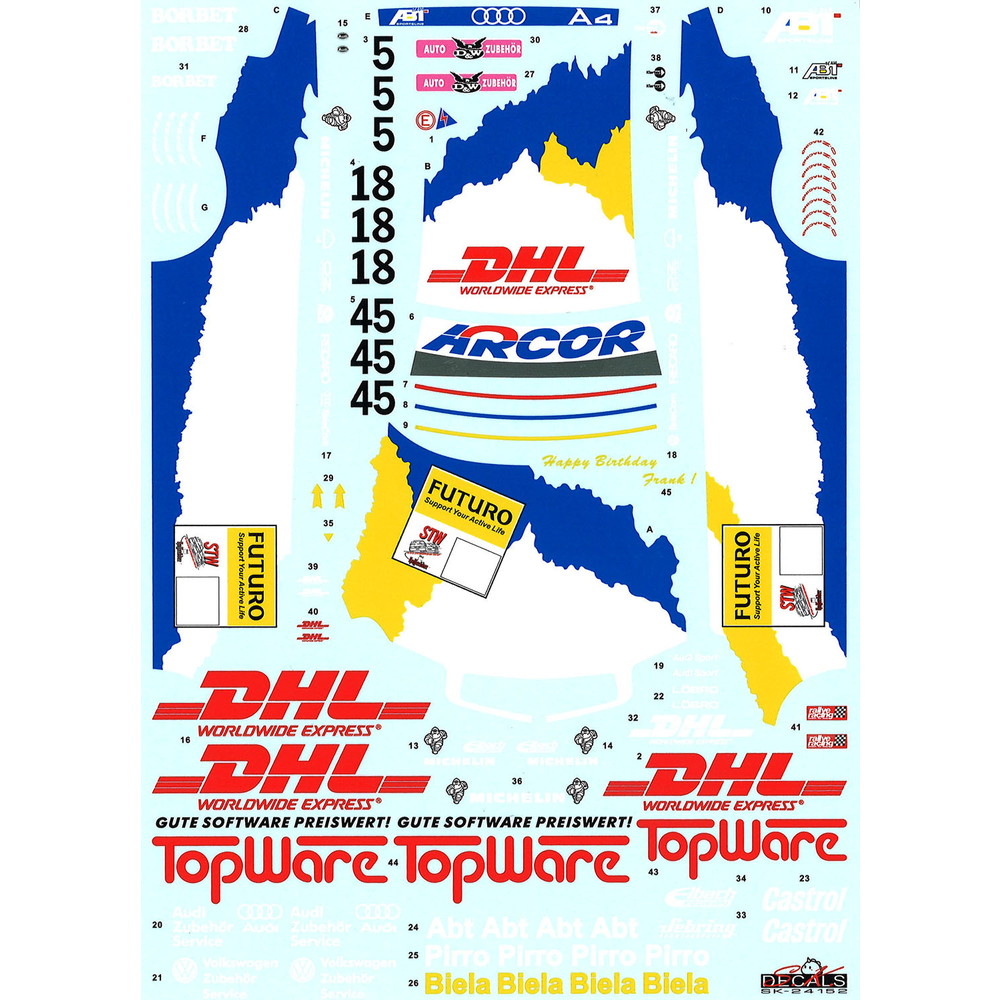 このキットでは1998年にドイツのスーパーツーリング選手権に参加したAbtスポーツラインチームのマシンのマーキングを再現するデカールをセット。