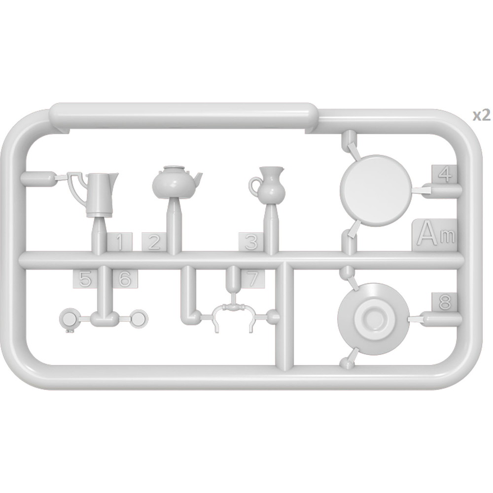 情景作りのワンポイント。1/35スケールで再現されたコップやビンなどの食器セットです。