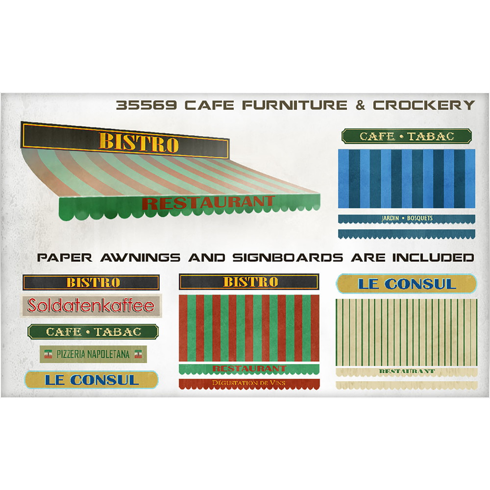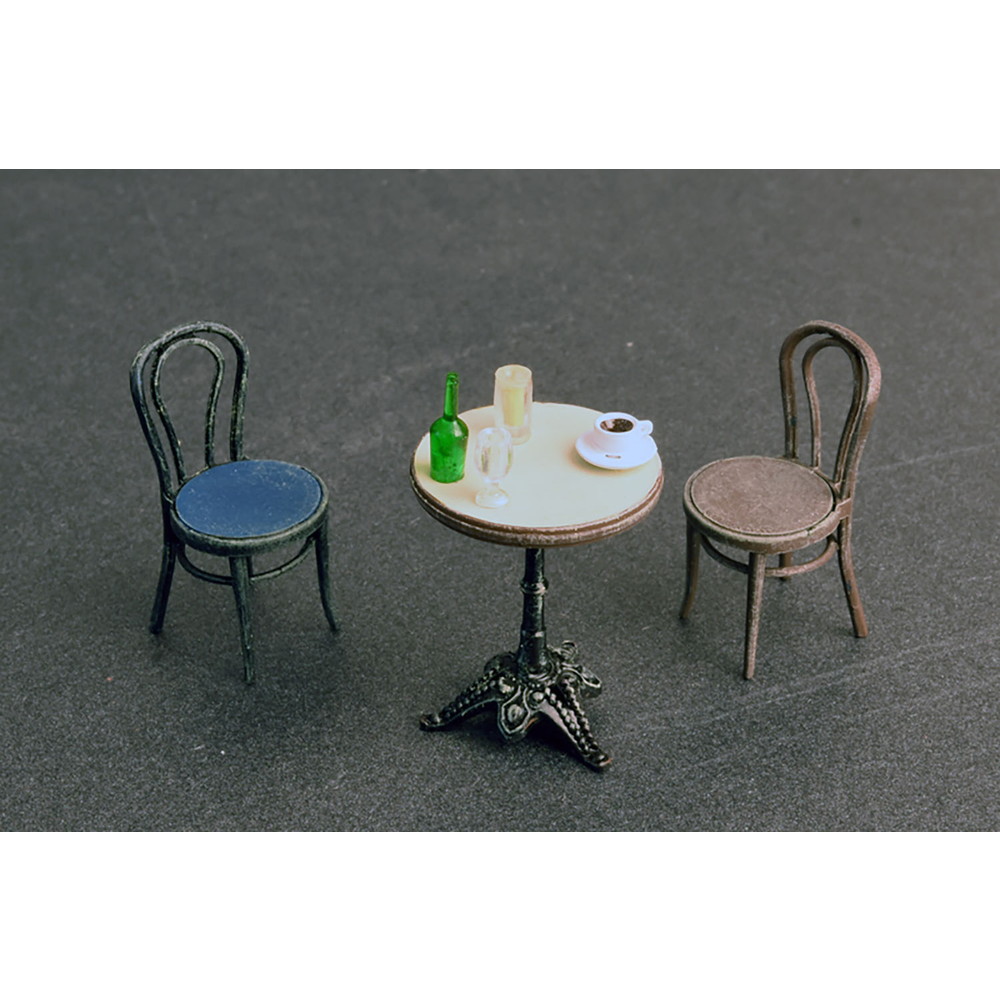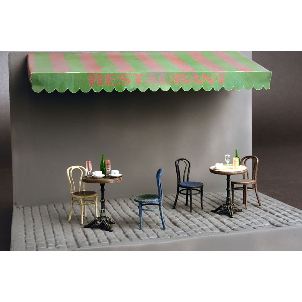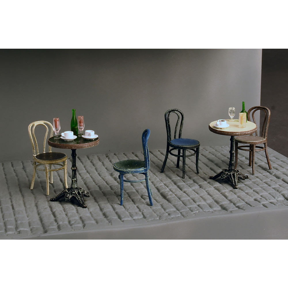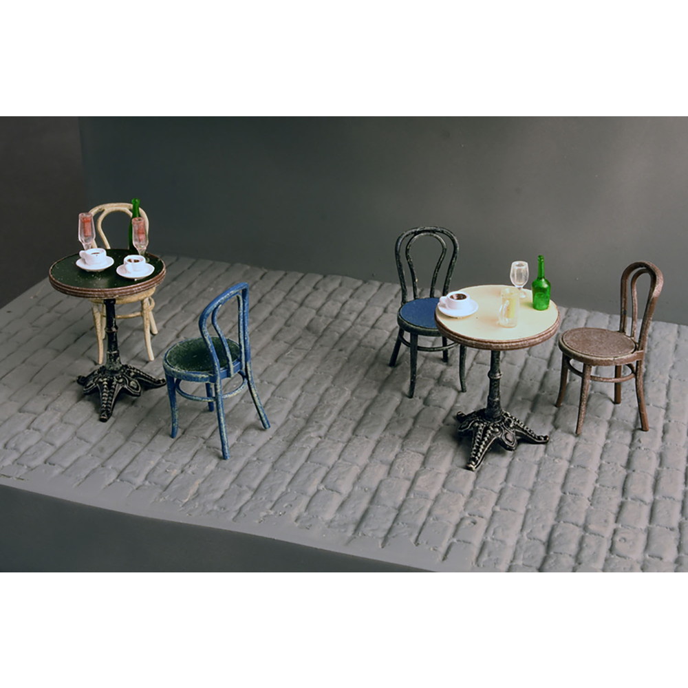 街のカフェを再現・ヨーロッパのカフェで使われるイスやテーブルを1/35スケールで再現。ビンやコップもセット
