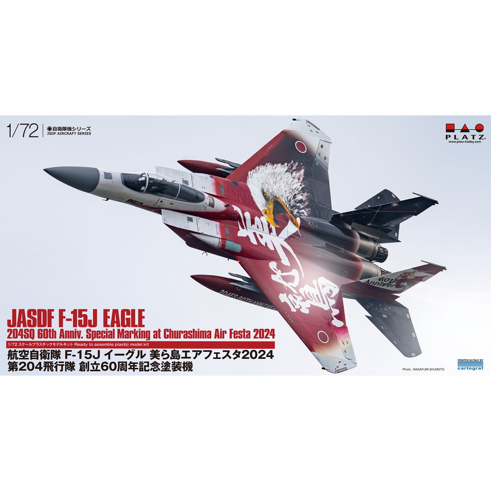 モデルはすでに飛行機模型ファンには高い評価を集めているプラッツの1/72航空自衛隊F-15Jイーグルをベースに、2024年12月8日に開催された美ら島エアーフェスタ2024に登場した第204飛行隊の創立60周年を記念した特別塗装機を再現したプラスチックモデル組み立てキットです。
