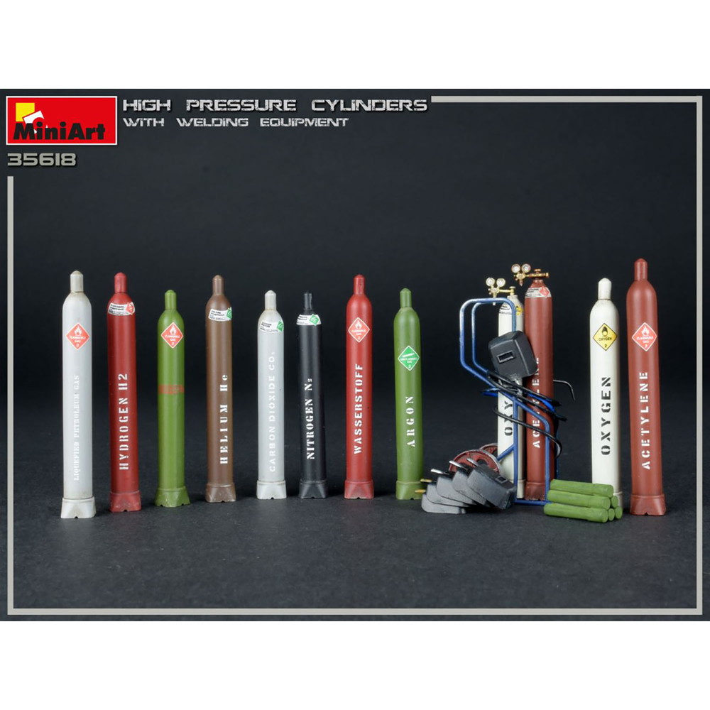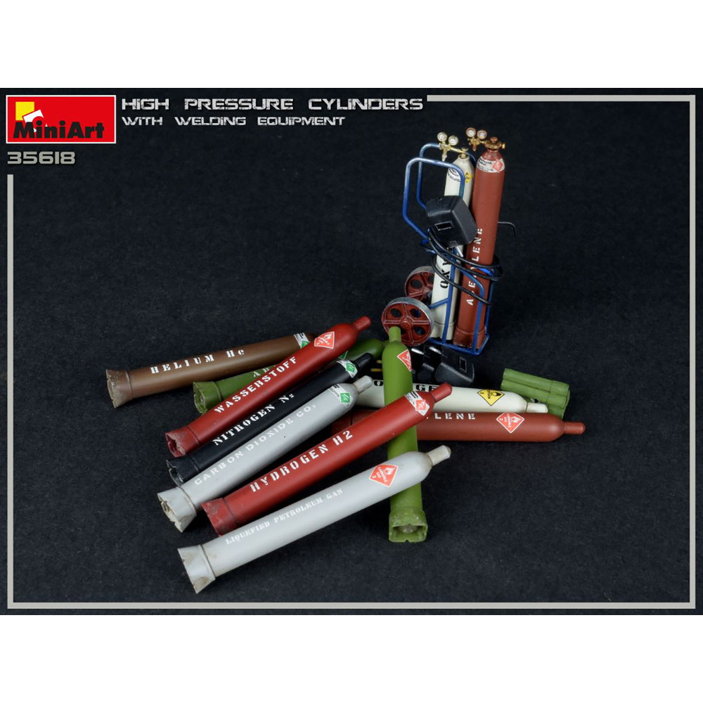 工場情景のアクセサリーに・1/35スケールで溶接のガスボンベとそれを運搬する台車を再現