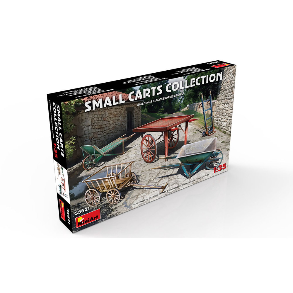 色々なデザインと形の手押し車・1/35スケールで5タイプの荷物を運ぶ手押し車、カートを再現したセット