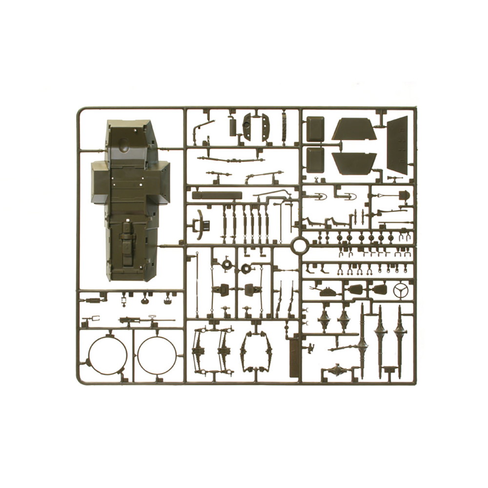 モデルはアメリカの装輪式装甲車M8グレイハウンドを1/35スケールで再現したプラスチックモデル組み立てキットです。仕上がりの全長は140mm。