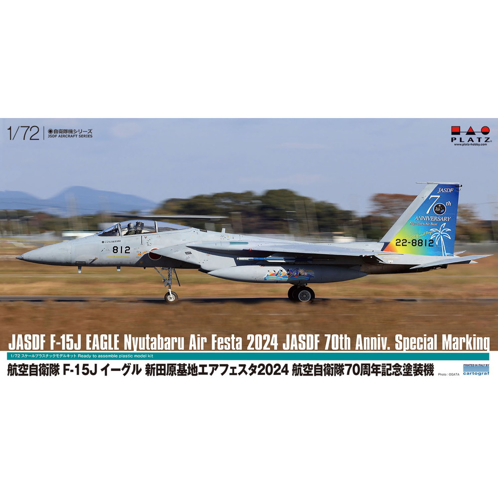 モデルはすでに飛行機模型ファンには高い評価を集めているプラッツの1/72航空自衛隊F-15Jイーグルをベースに、2024年12月1日に開催された新田原エアフェスタ2024に登場した航空自衛隊創立70周年を記念した特別塗装機を再現したプラスチックモデル組み立てキットです。