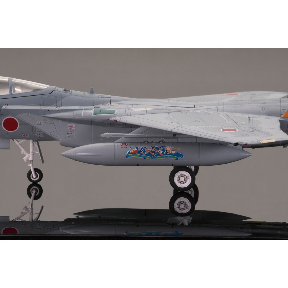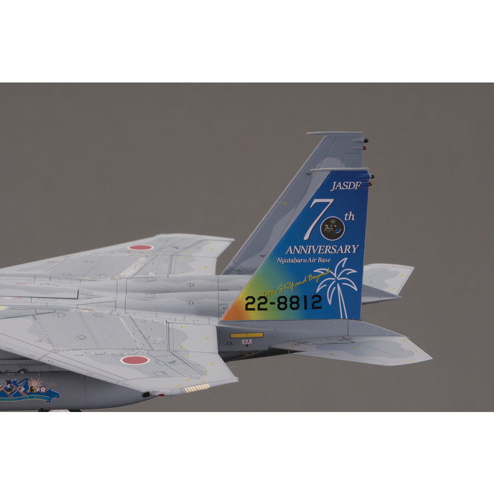 垂直尾翼に描かれた航空自衛隊70周年記念のロゴマークや南国宮崎を象徴する太陽、フェニックスの木をはじめ、翼下のタンクに描かれた新田原基地に在籍してきた歴代の部隊のマークなどをカルトグラフ社製デカールで再現。