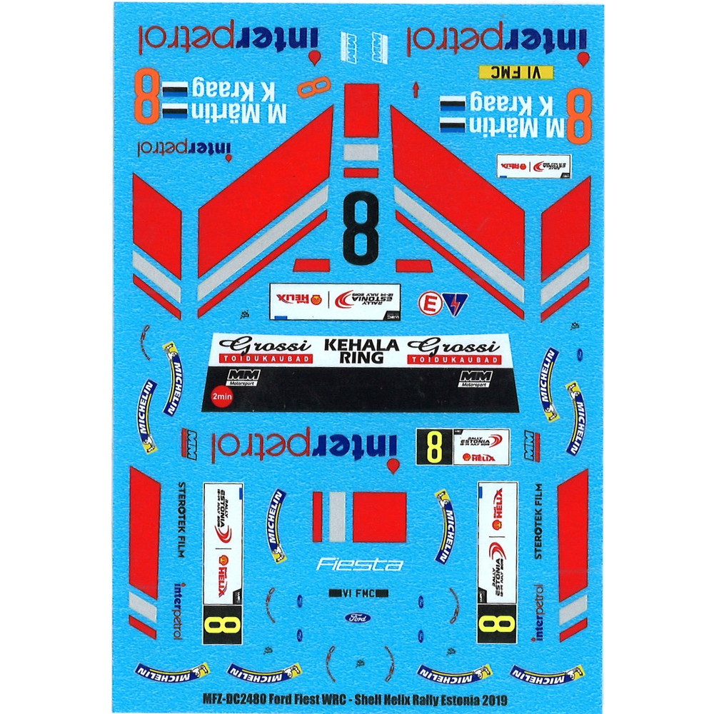セットのデカールは2019年7月に開催された第9回ラリーエストニアに参加したフォードフィエスタWRCのマーキングを収録しています。