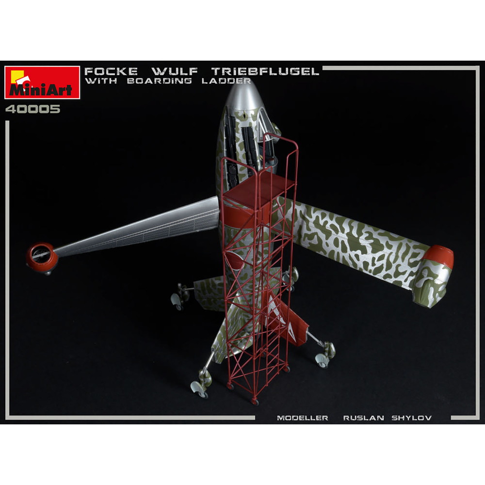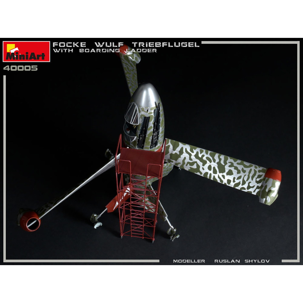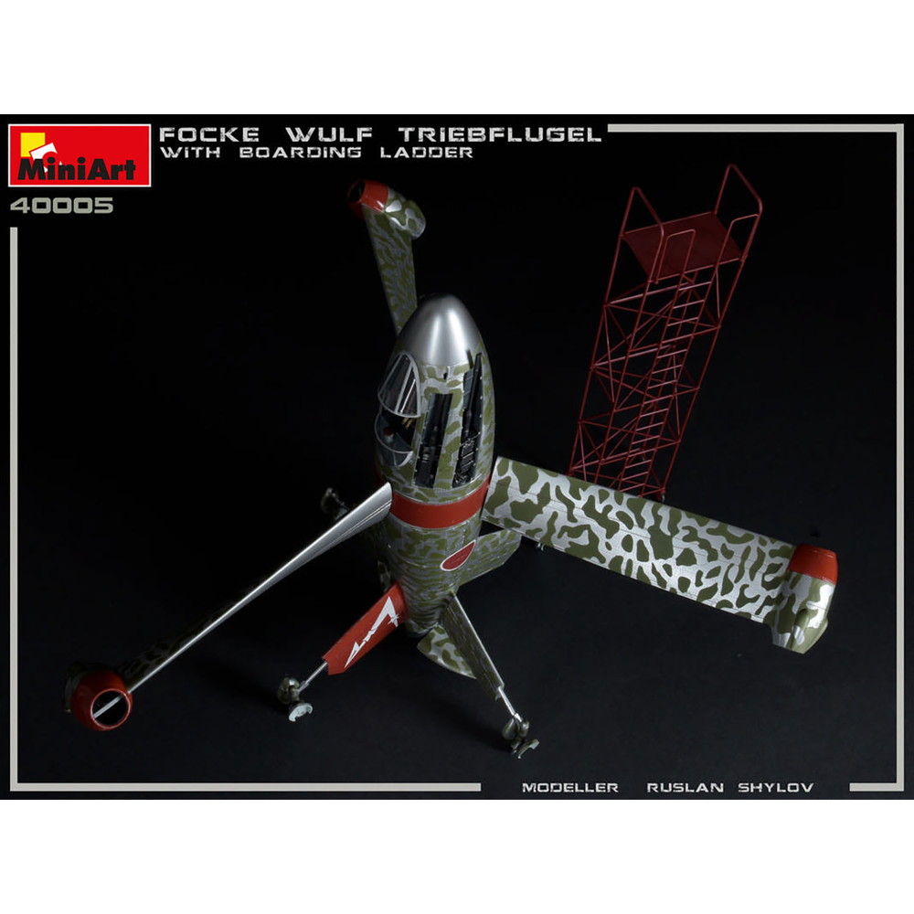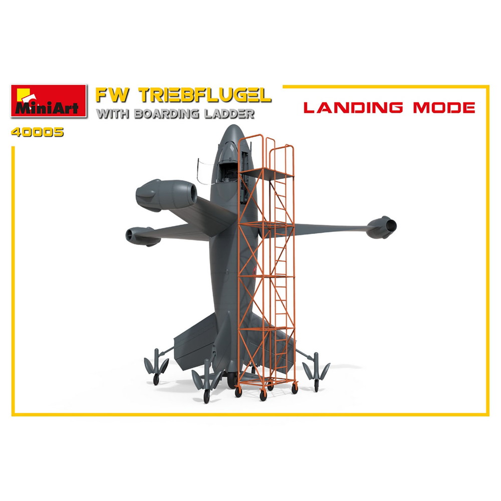 第二次大戦末期にドイツが設計していたという3枚羽の垂直離着陸機を1/35で再現。このセットにはパイロットの搭乗用ラダーパーツをセット