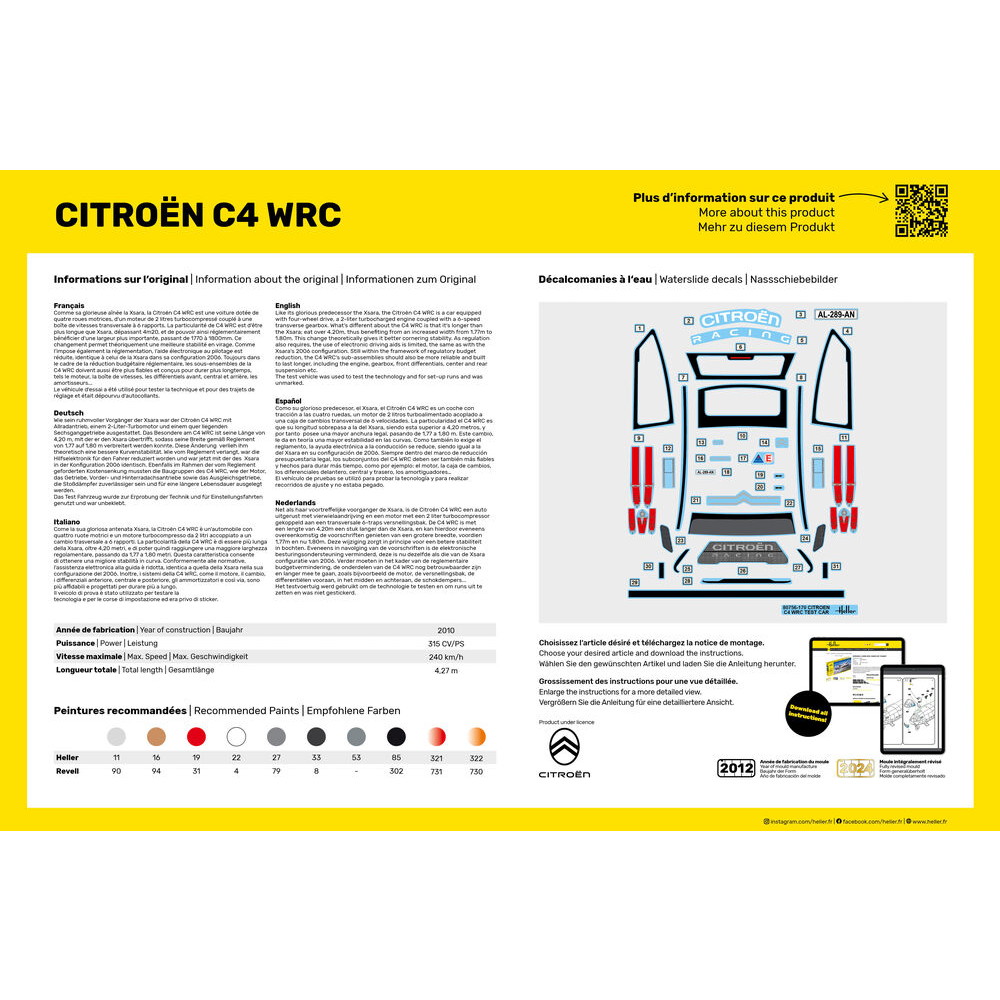 1/24スケールで世界ラリー選手権、WRCで活躍したフランスのシトロエンC4 WRCを再現したプラスチックモデル組み立てキットです。