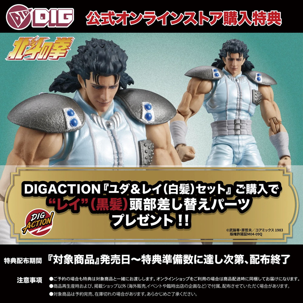 トキによって秘孔“心霊台”により白髪と化した姿の「レイ」が、セットとなって可動フィギュア【DIGACTION】より登場!!
