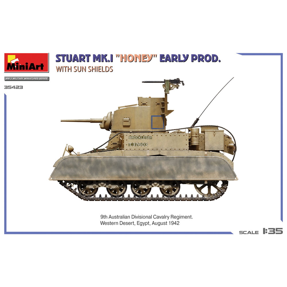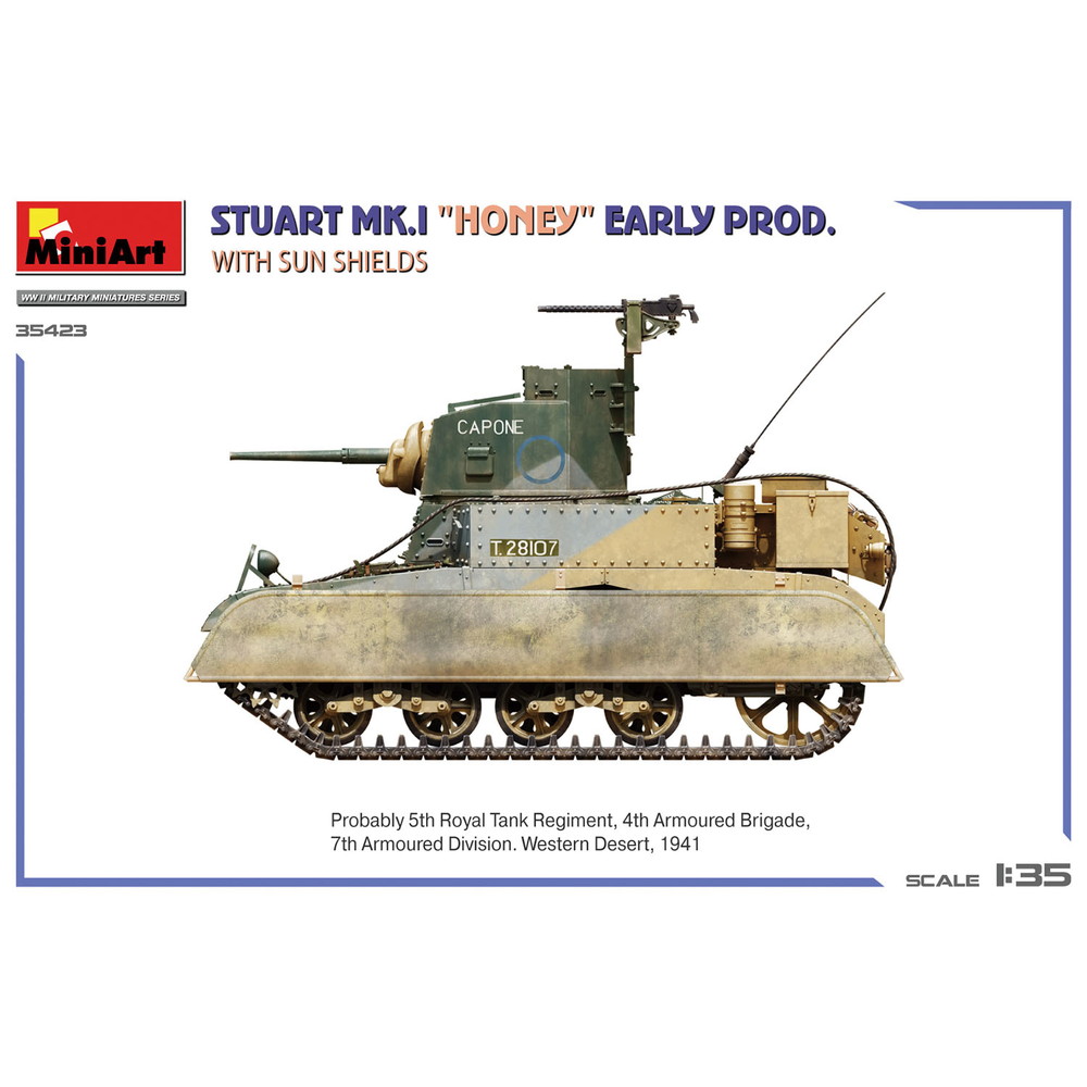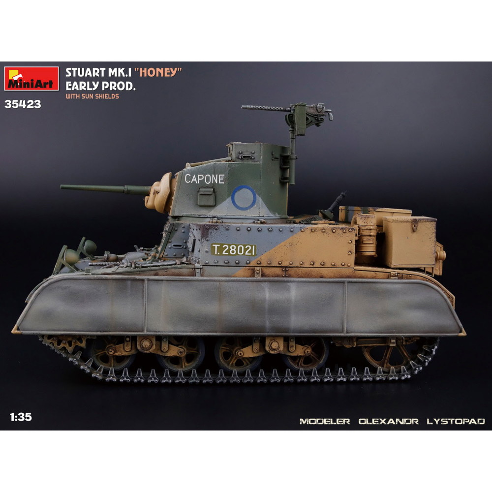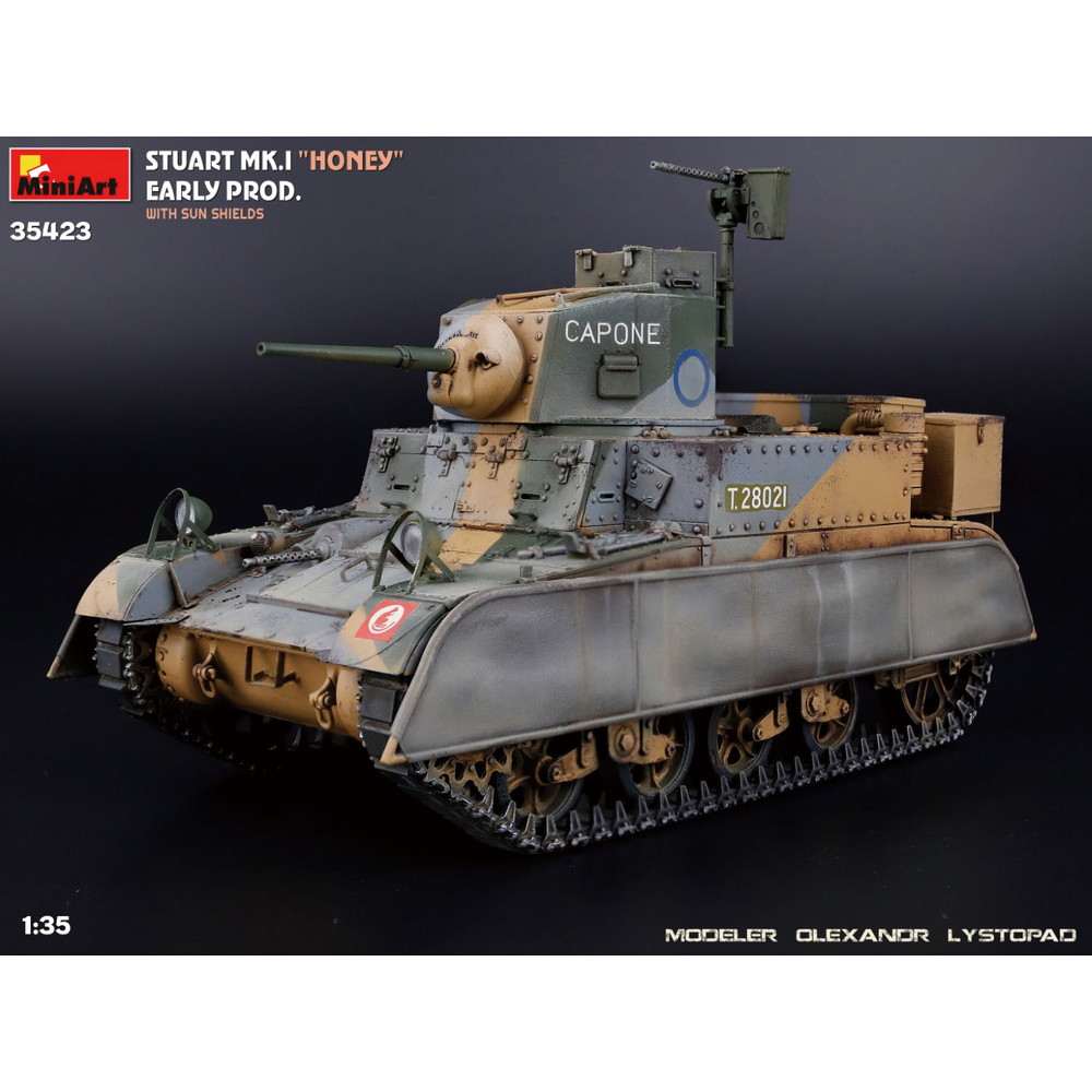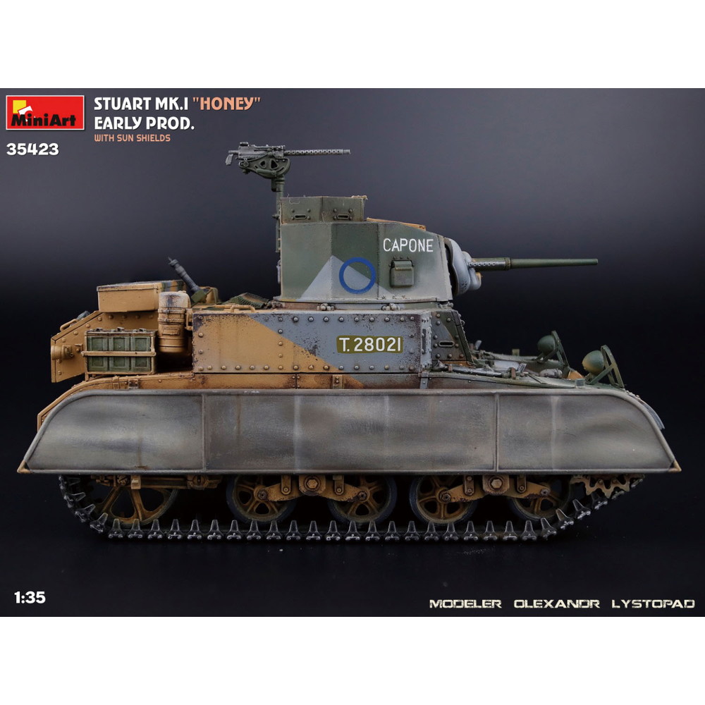 第二次世界大戦でイギリス軍が運用し、ハニーの愛称で呼ばれた軽戦車スチュアートMk.Iを再現した1/35スケールのプラスチックモデル組み立てキットです。