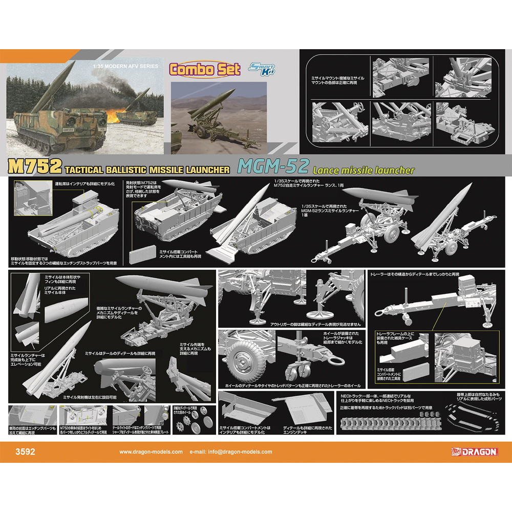 モデルはアメリカ軍が1970年代に開発した自走式ミサイル発射機、M752自走ミサイルランチャー ランスと移動式ミサイルシステム、MGM-52ランスミサイルシステムを1/35スケールで再現したコンボセットです。