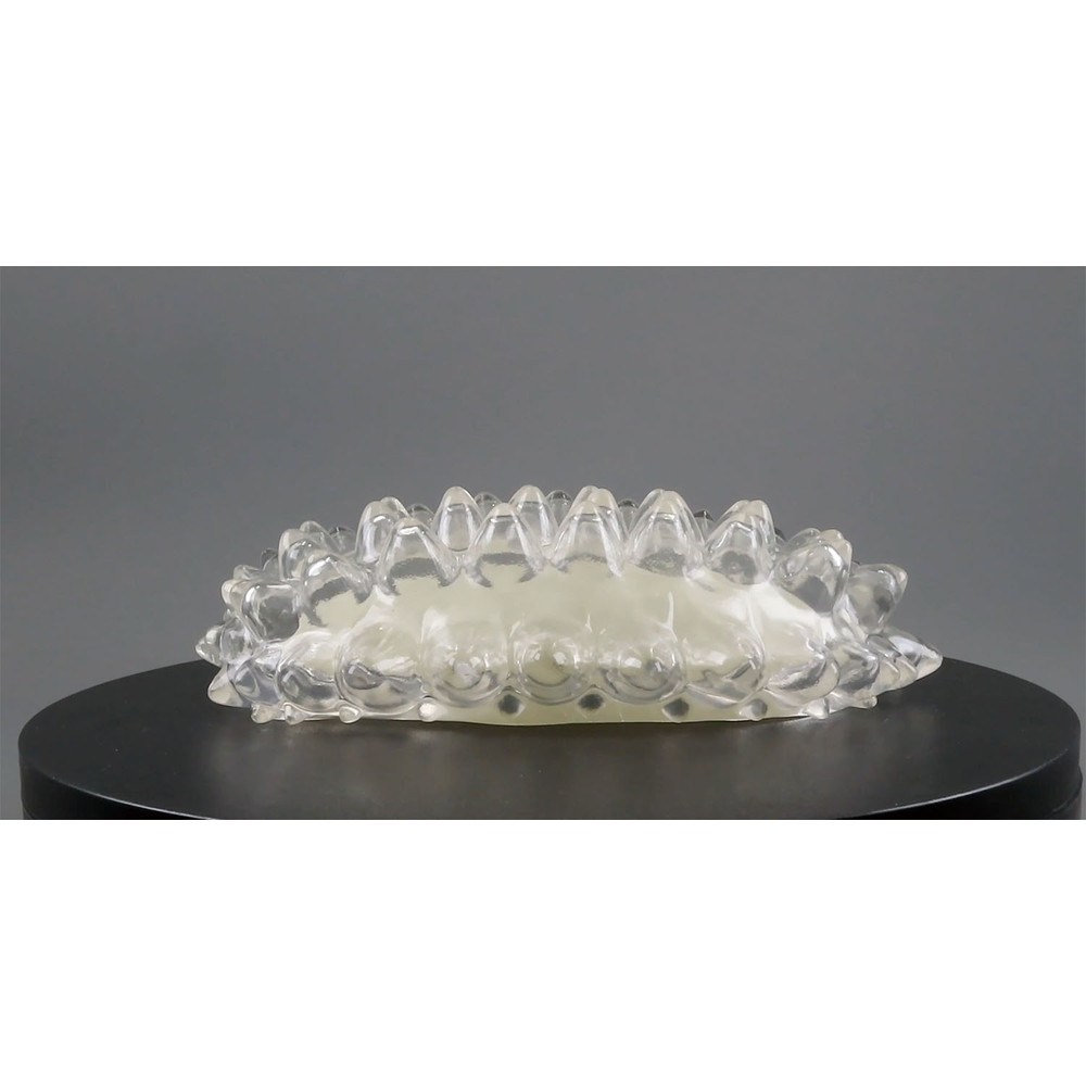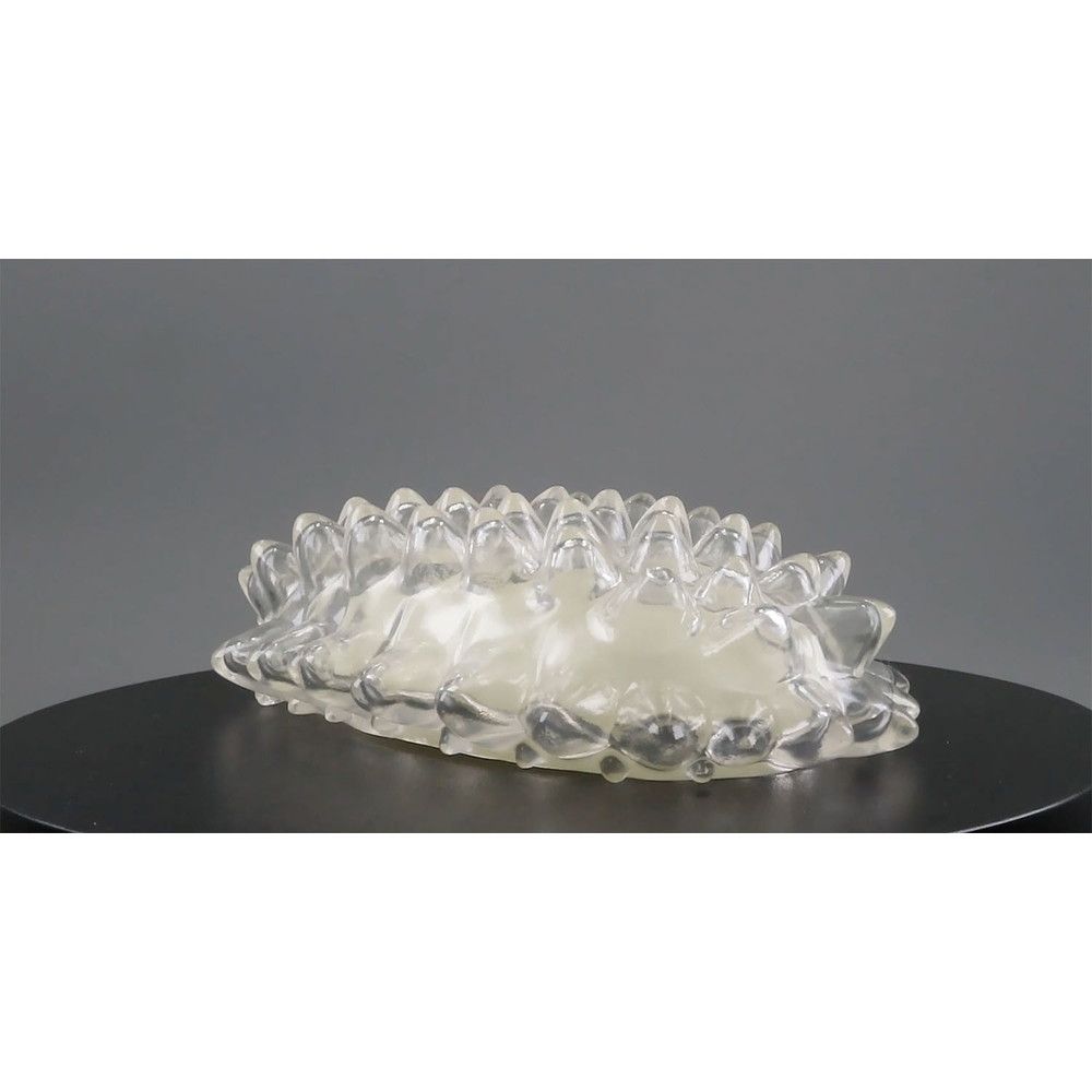 クリア素材で特徴的な粘液を表現し、本体は蓄光ソフビで表現。