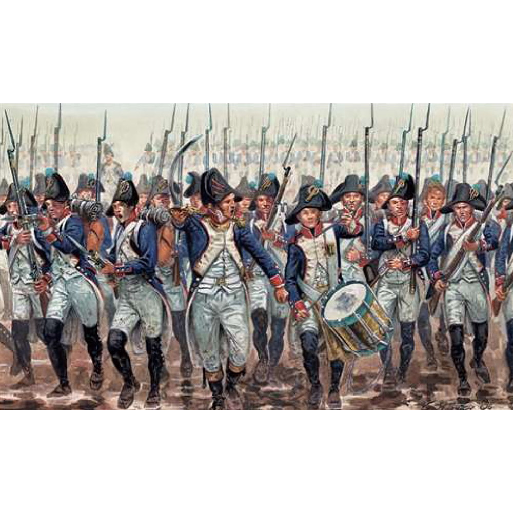 1/72スケールで1800年代初期のナポレオン戦争で活躍したフランス軍歩兵を再現したプラスチックモデルフィギュアの組み立てキットです。