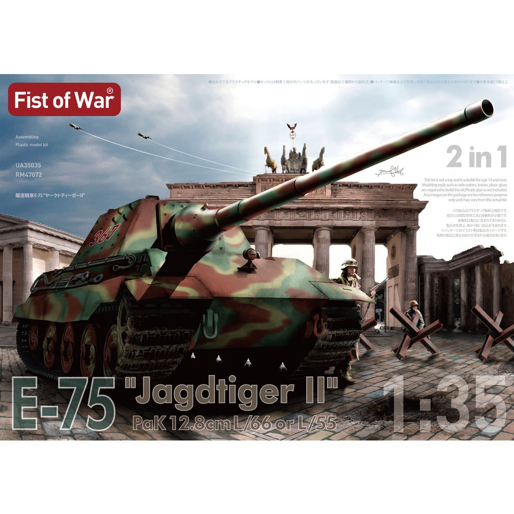 モデルは第二次大戦の終結があと2年遅かったらドイツ軍が開発、運用したであろう駆逐戦車、E-75ヤークトティーガーIIを1/35スケールでモデル化。