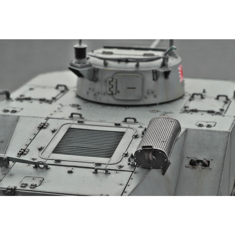 正確に再現された砲塔には37mm戦車砲は砲塔内部に収まる砲身基部まで再現され、メカニカルな仕上がり。砲塔ハッチや車体の換気グリルハッチなどは開閉を選択して組み立て可能。