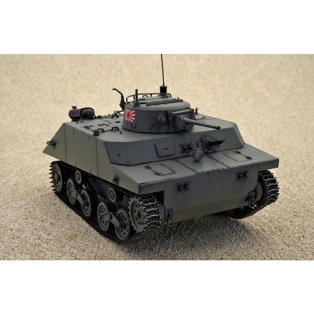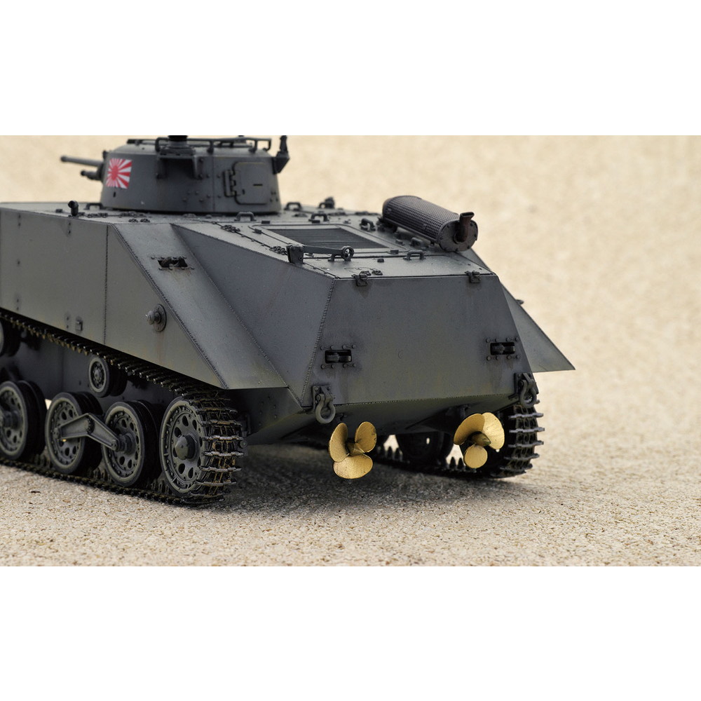 主砲は一式37mm戦車砲を装備。車体の前後には浮力を得るための着脱式のフロートを装備し、水陸両用の走行が可能でした。