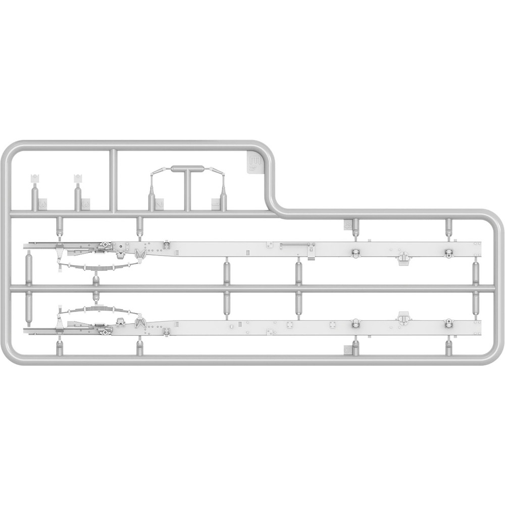 ラダーフレームのシャーシはフレーム形状をしっかりと再現し、前後のリーフスプリングや四輪駆動のドライブシャフト類を細かくモデル化。