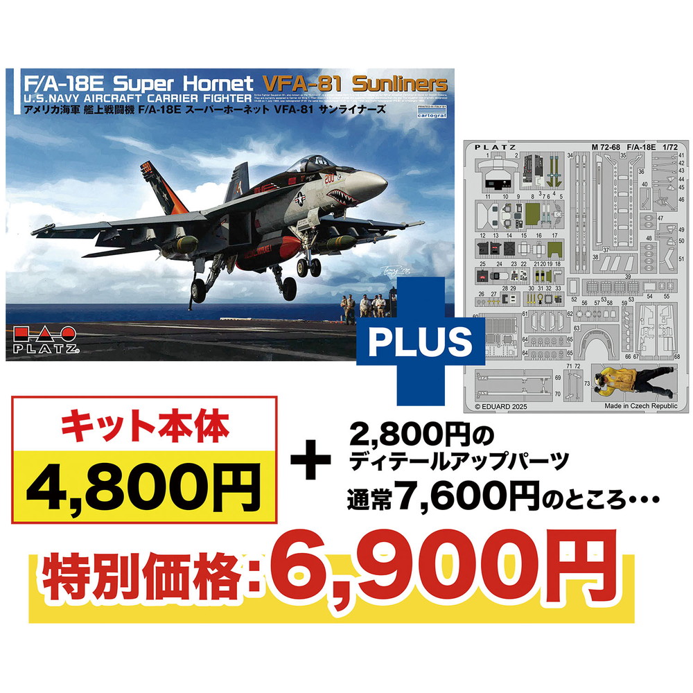 加えてこのセットではプラッツオリジナルデザインのディテールアップ用エッチングパーツをセット。計器パネルやサイドコンソールパネル、シートベルトなどのコクピットパーツや、脚収納庫などのディテールを表現するパーツに加えフライトデッキ上のデッキクルーのフィギュアもエッチングで再現。
