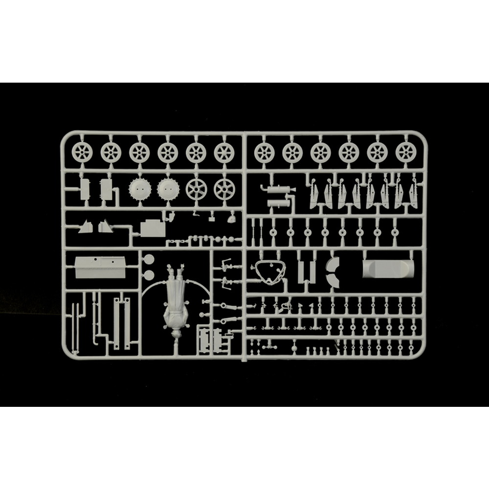 履帯は組み立てやすいベルト式を採用。さらに、車体下部の内部も運転席や車体前部のトランスミッションも表現され、オープントップ車両ならではの魅力が楽しみ。