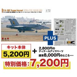 マーキングはアメリカ海軍攻撃飛行隊VFA-115イーグルスの所属機をイタリアのカルトグラフ社製デカールで再現しています。さらにこのモデルの仕上がりを高めるディテールアップ用のエッチングパーツをセット。プラッツオリジナルデザインで計器パネルやサイドコンソールパネル、脚収納庫などのディテールを表現するパーツなどを用意。さらにフライトデッキ上のデッキクルーのフィギュアもエッチングで再現。