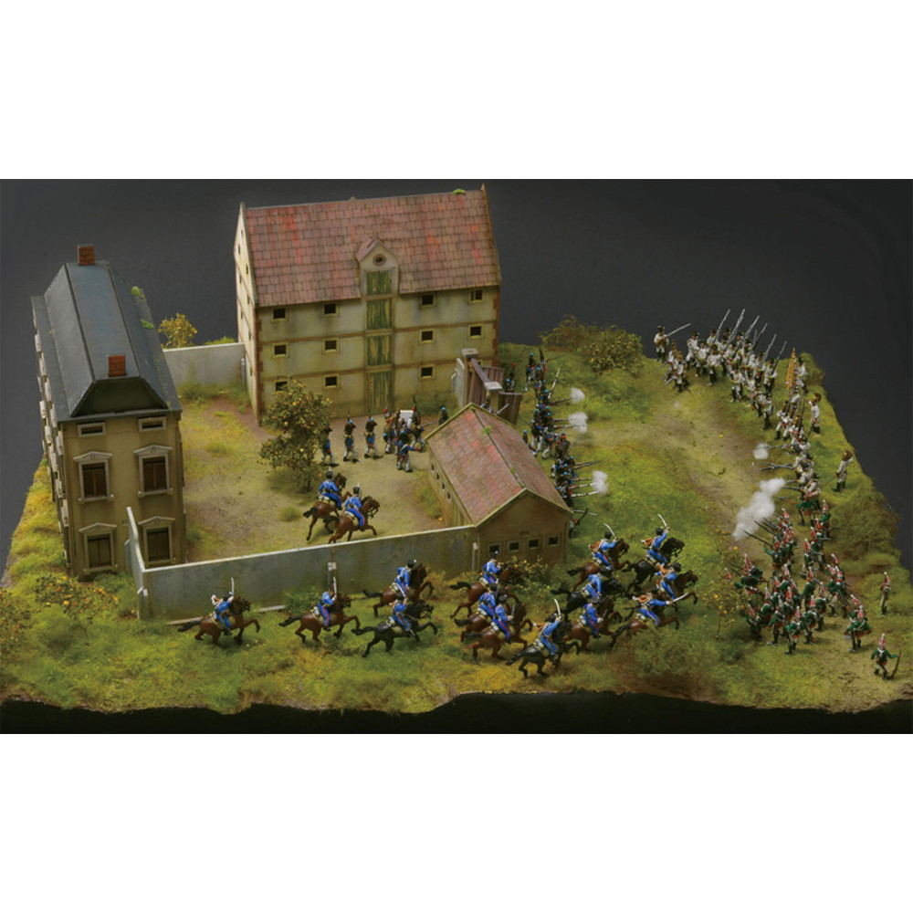 そして、その建物を巡り攻防を繰り広げたナポレオン率いるフランス軍歩兵と騎馬軽騎兵のフィギュアが49体とロシア軍擲弾兵32体、そしてオーストリア歩兵50体のフィギュアをセット。