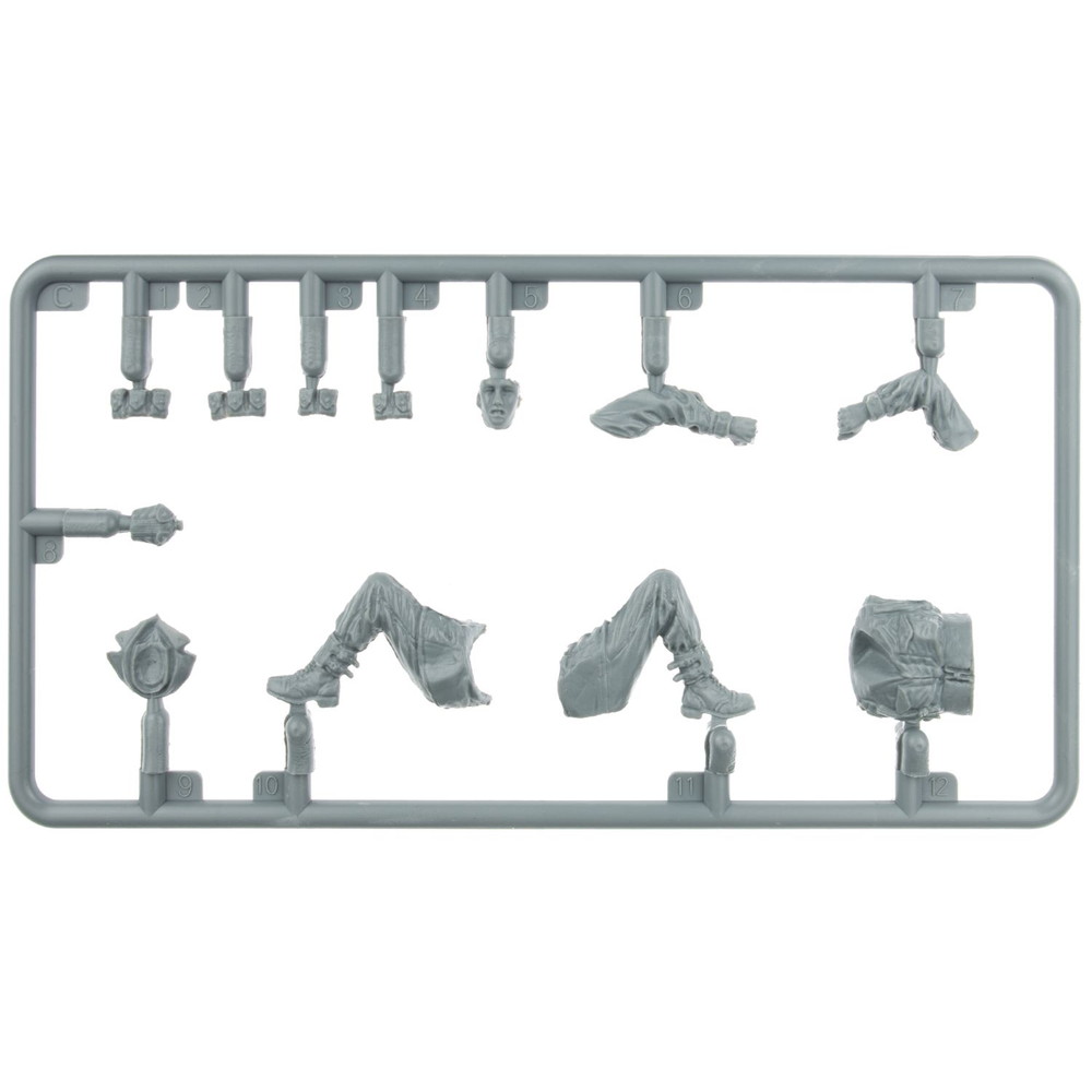 セットは戦車の車体に乗って移動している様子を再現した戦闘状態とは違う少しリラックスしたポージングの座った兵士が4体。第二次大戦中のアメリカ軍歩兵の標準的なユニフォームを着用した姿はその皺の表現も詳細に表現され実感たっぷりです。