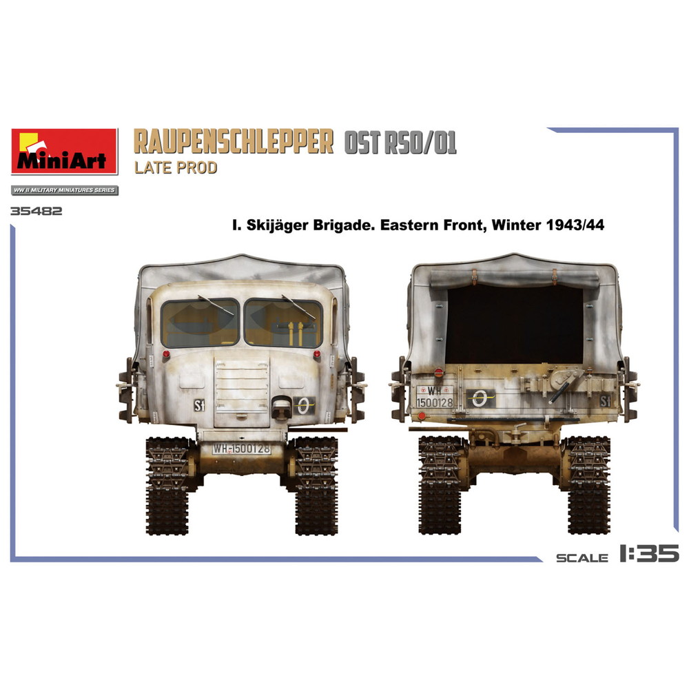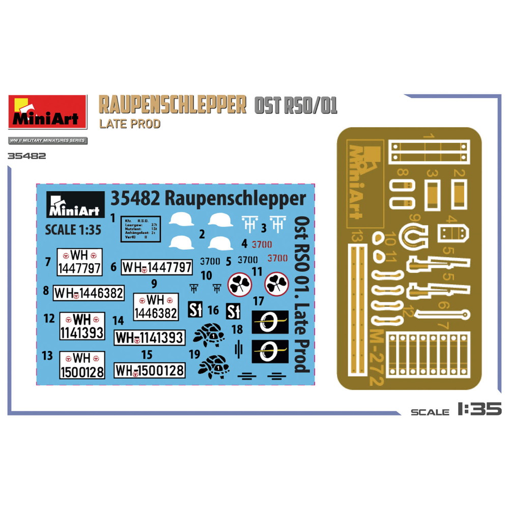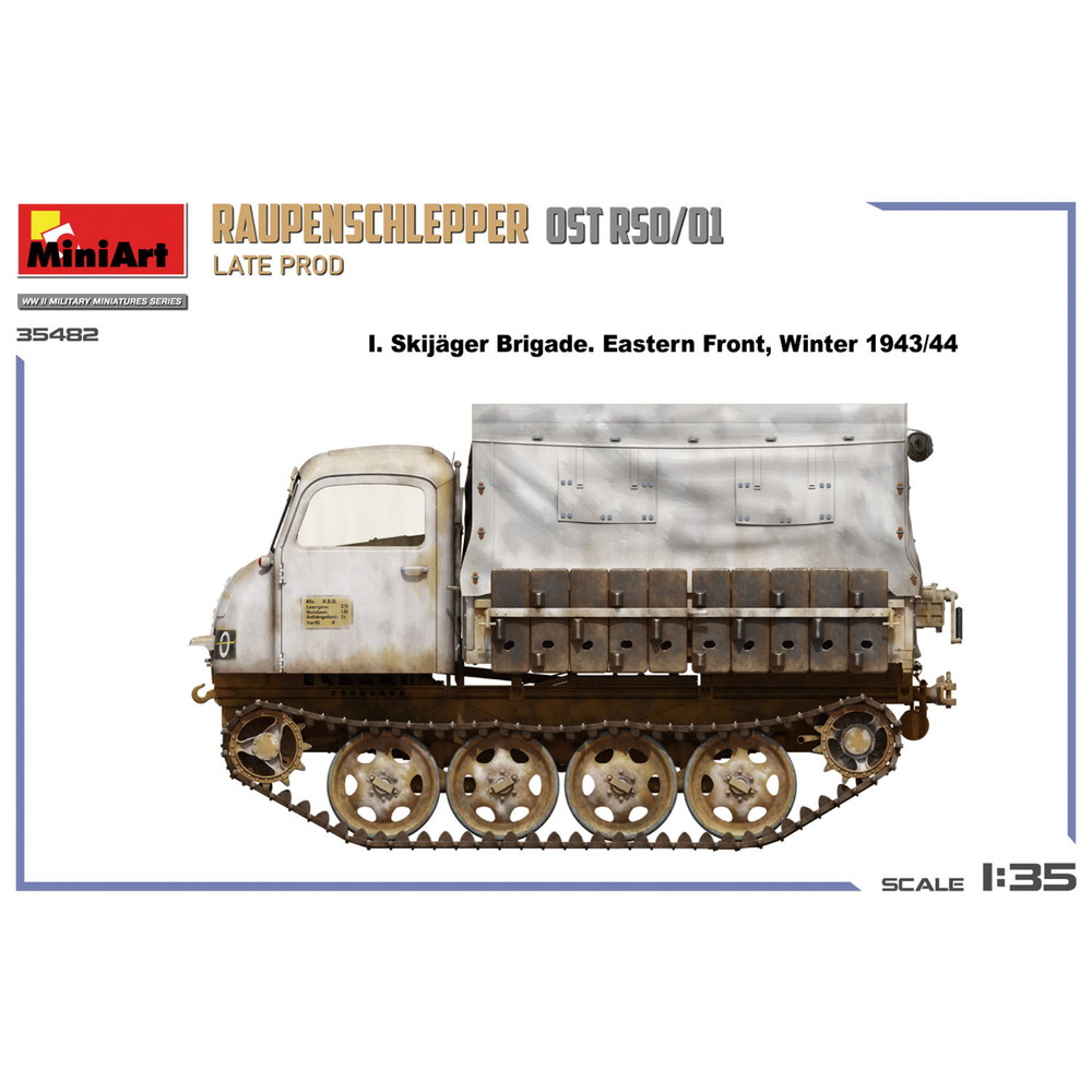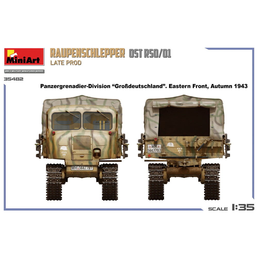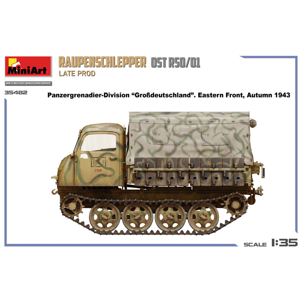 第二次世界大戦中、ドイツ軍が配備した装軌式トラクター、RSO/01の後期生産型を再現した1/35スケールのプラスチックモデル組み立てキットです。