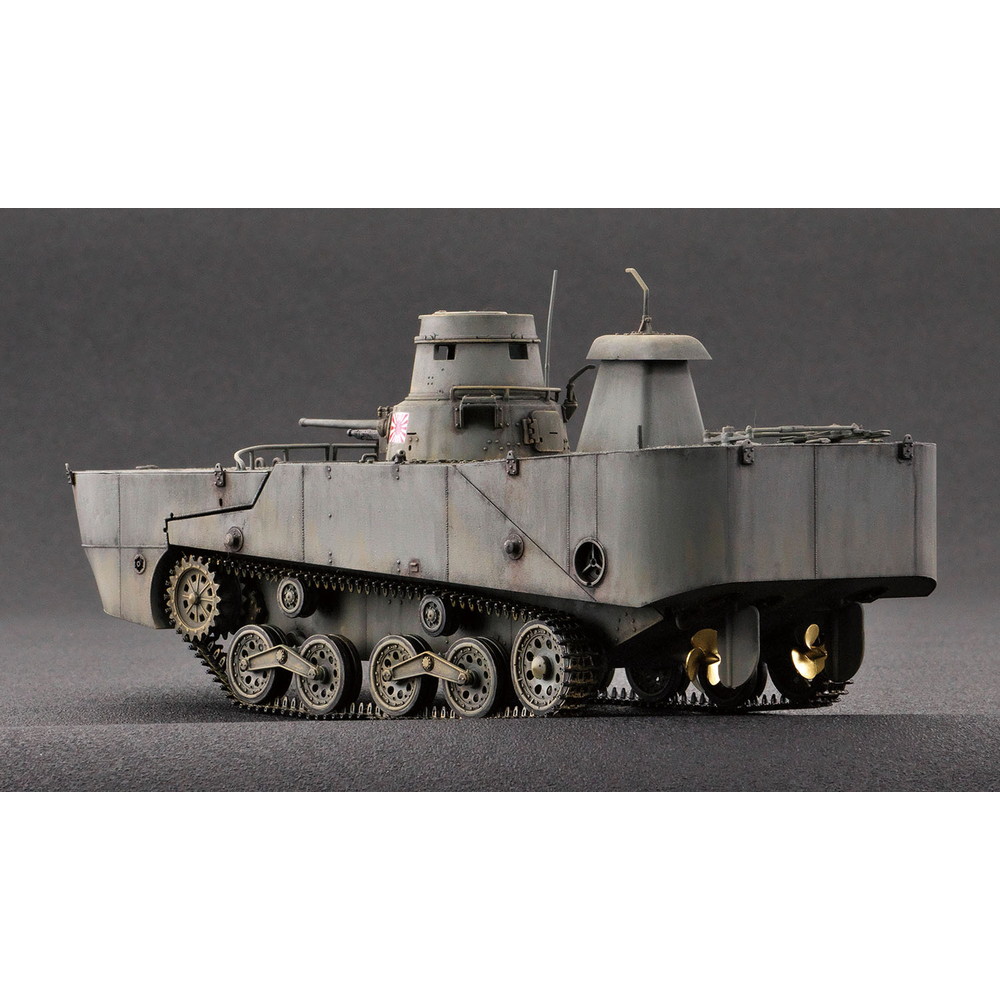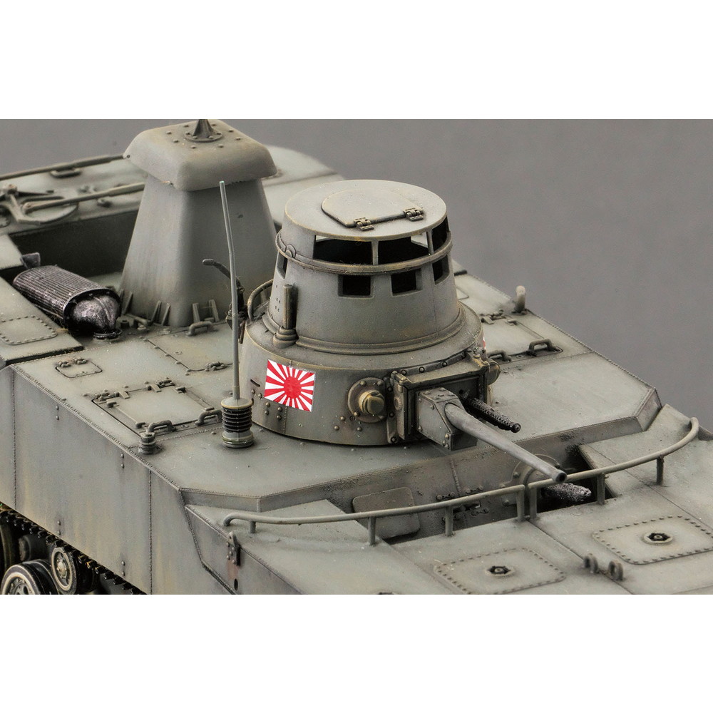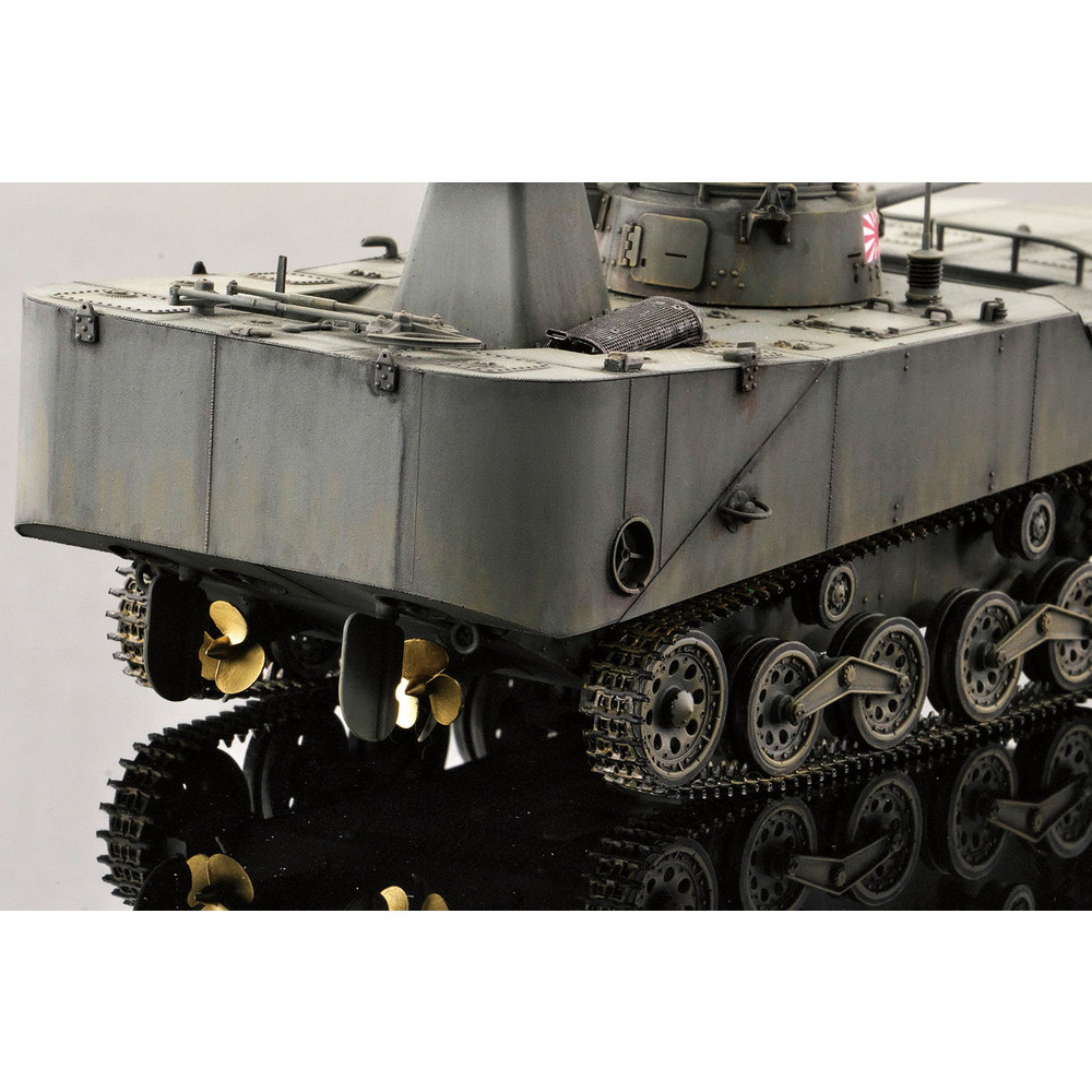 主砲は一式37mm戦車砲を装備。車体の前後には浮力を得るための着脱式のフロートを装備し、水陸両用の走行が可能でした。