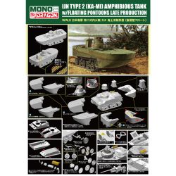 第二次世界大戦で日本軍が開発、運用した水陸両用戦車、特二式内火艇カミを再現した1/35スケールのプラスチックモデル組み立てキットです。