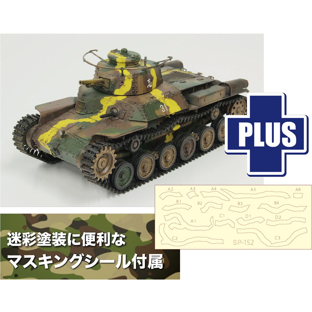このキットには九七式戦車独特の戦車のシルエットや姿勢などを分かりにくくするために入れられている黄帯を確実に 塗装できるよう、黄帯の形状にカットした専用マスキングシールを用意。