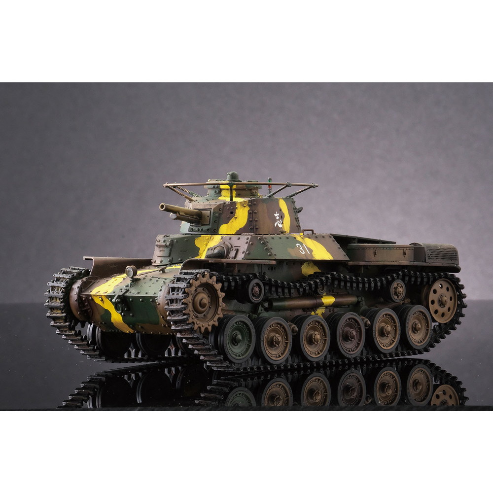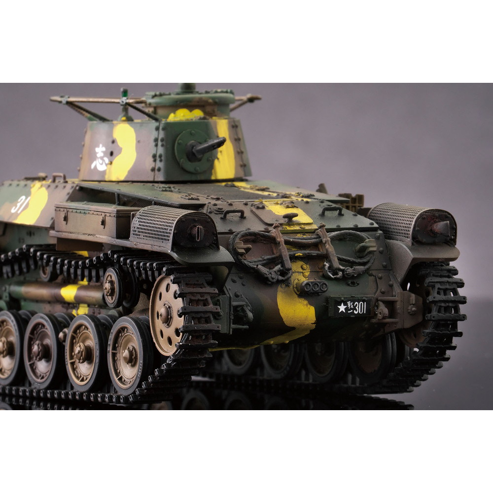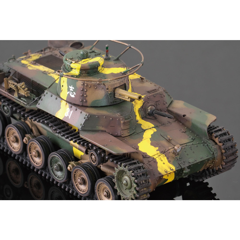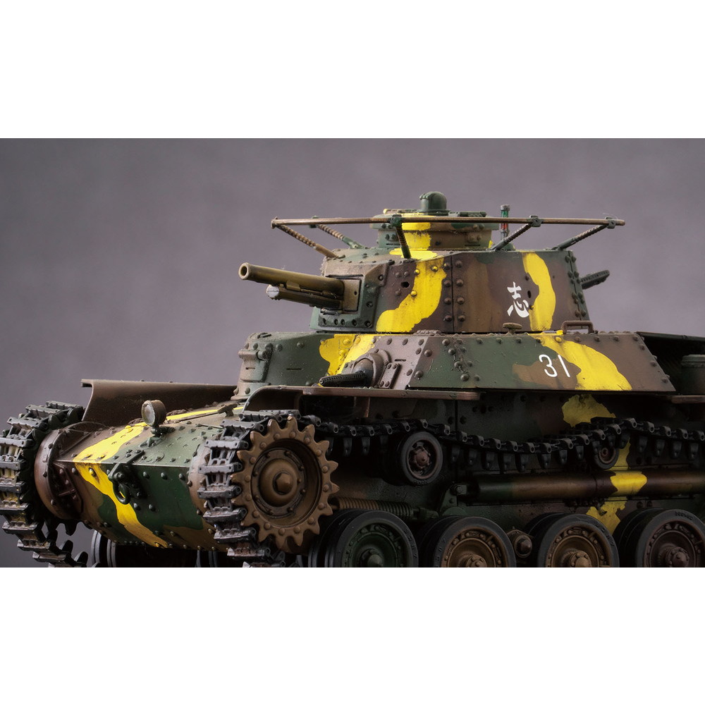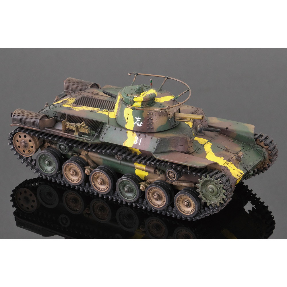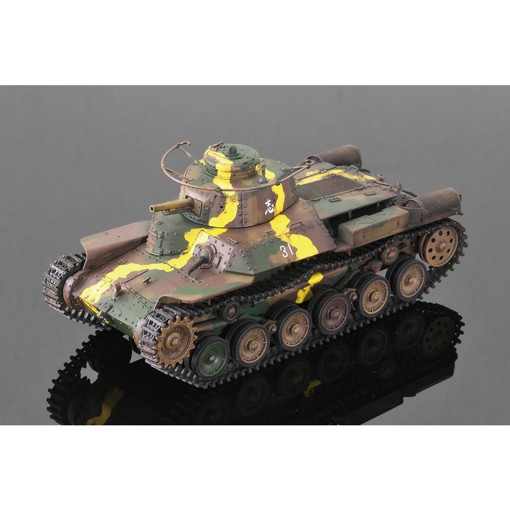 八九式中戦車の後継として開発が始められ、昭和12年(1938年)に完成し、その年に制式化。低くコンパクトにデザインされた車体形状や左右非対称の形状に鉢巻式アンテナを装備した砲塔、エンジンには空冷のディーゼルエンジンを搭載し、足回りには特徴あるシーソー式サスペンションを採用するなど、独自のメカニズムが盛り込まれていました。