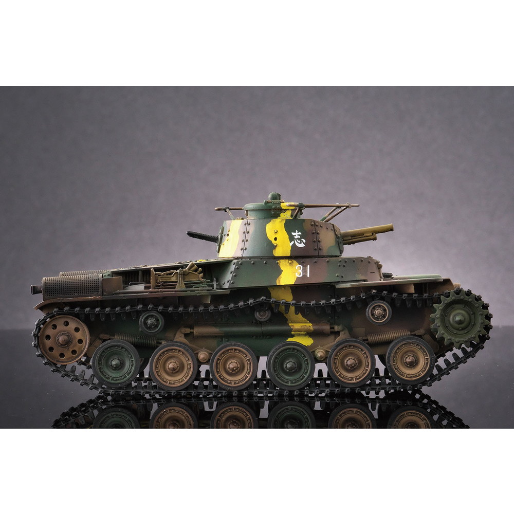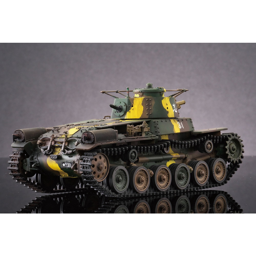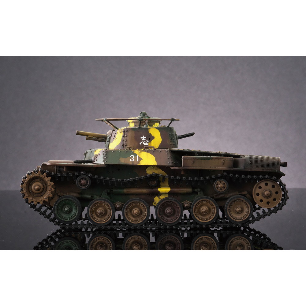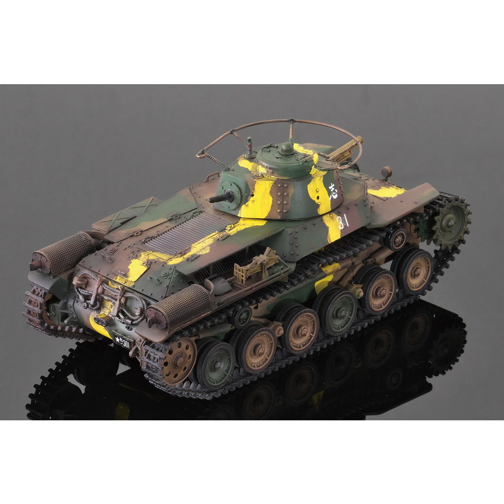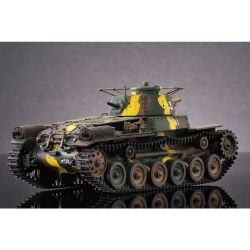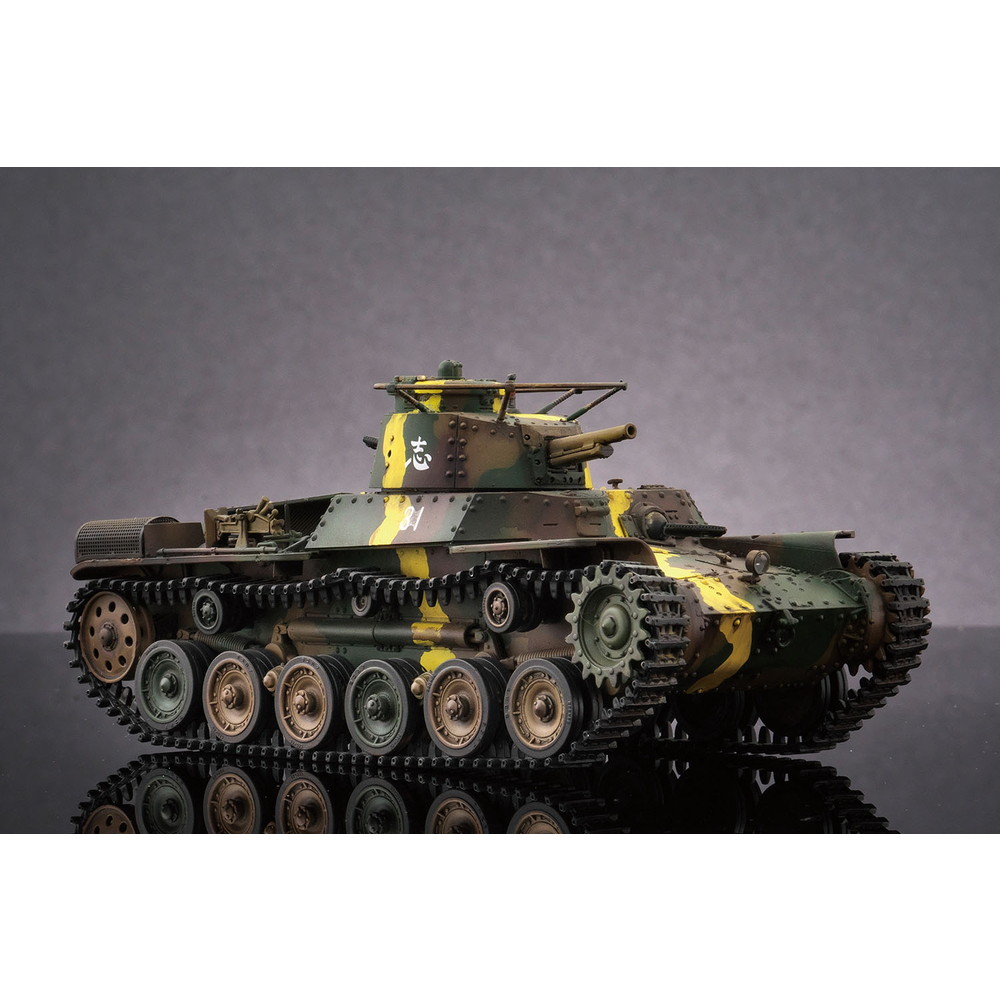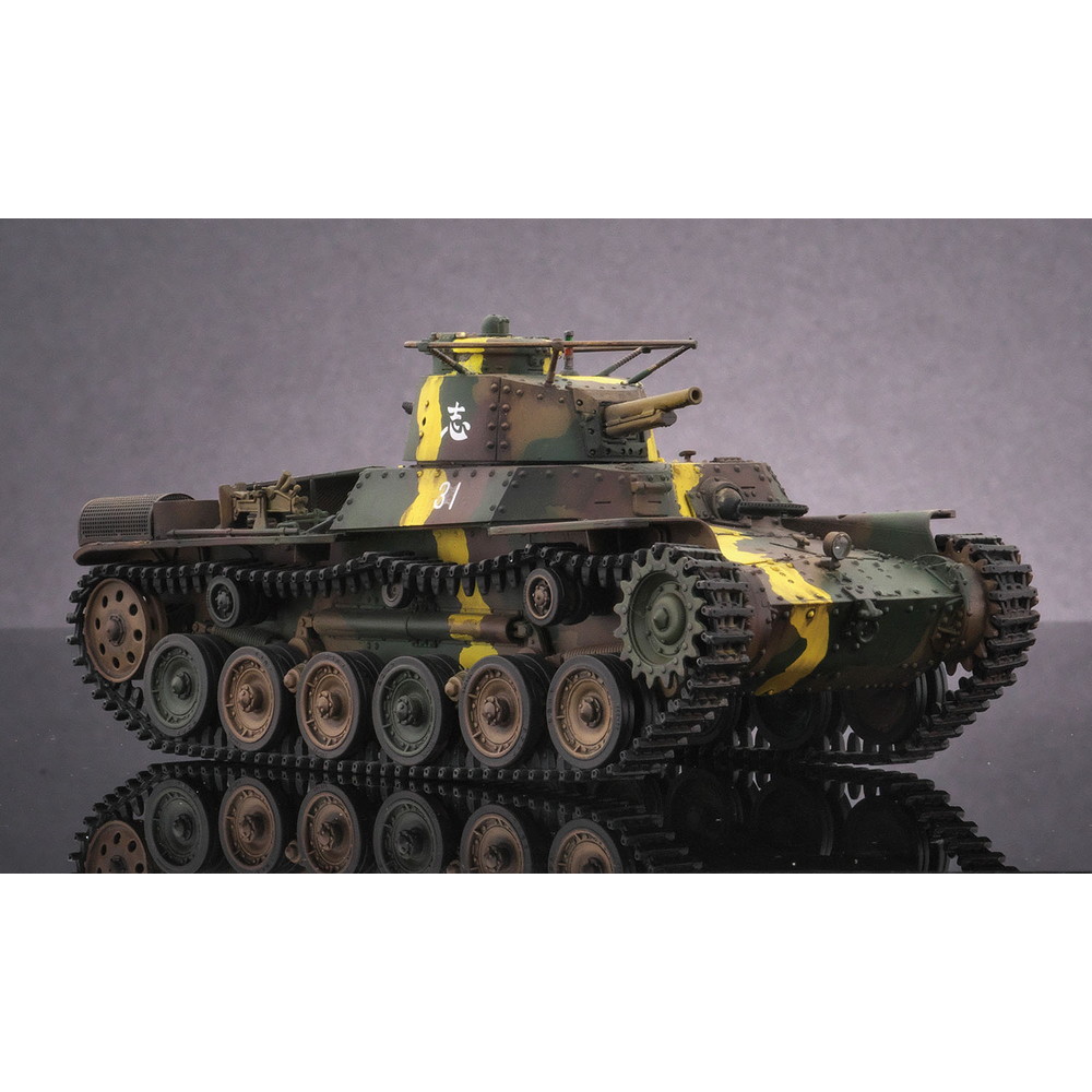 八九式中戦車の後継として開発が始められ、昭和12年(1938年)に完成し、その年に制式化。低くコンパクトにデザインされた車体形状や左右非対称の形状に鉢巻式アンテナを装備した砲塔、エンジンには空冷のディーゼルエンジンを搭載し、足回りには特徴あるシーソー式サスペンションを採用するなど、独自のメカニズムが盛り込まれていました。