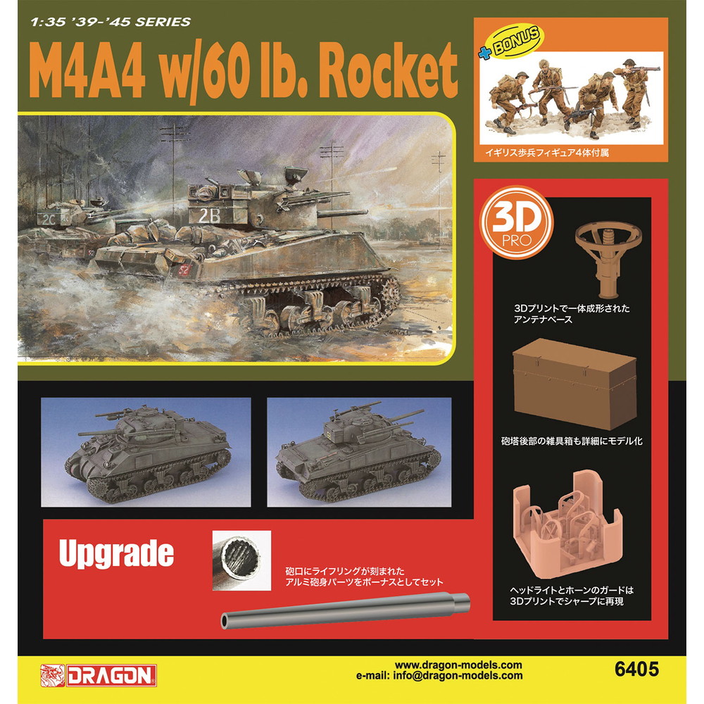 第二次大戦の連合軍主力戦車、シャーマンの中で砲塔に60ポンドロケット砲を搭載したM4A4を再現した1/35スケールのプラスチックモデル組み立てキットです。