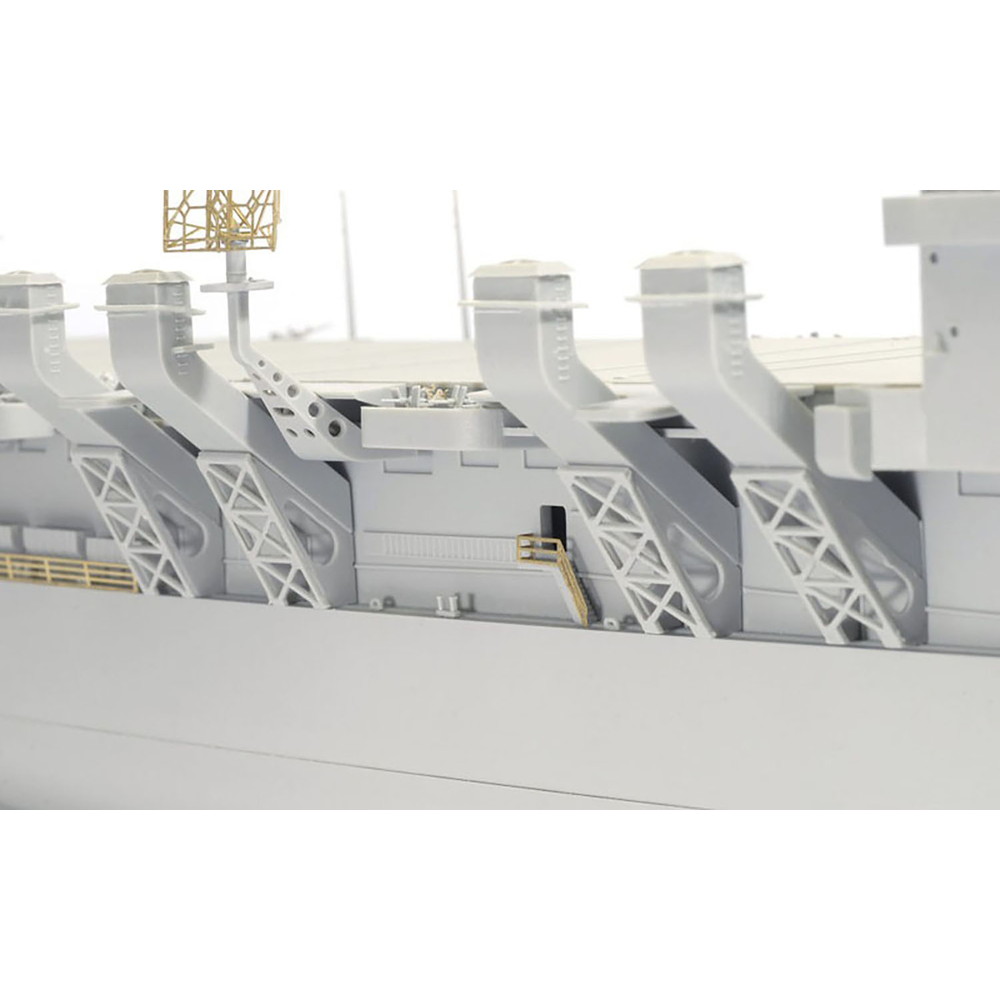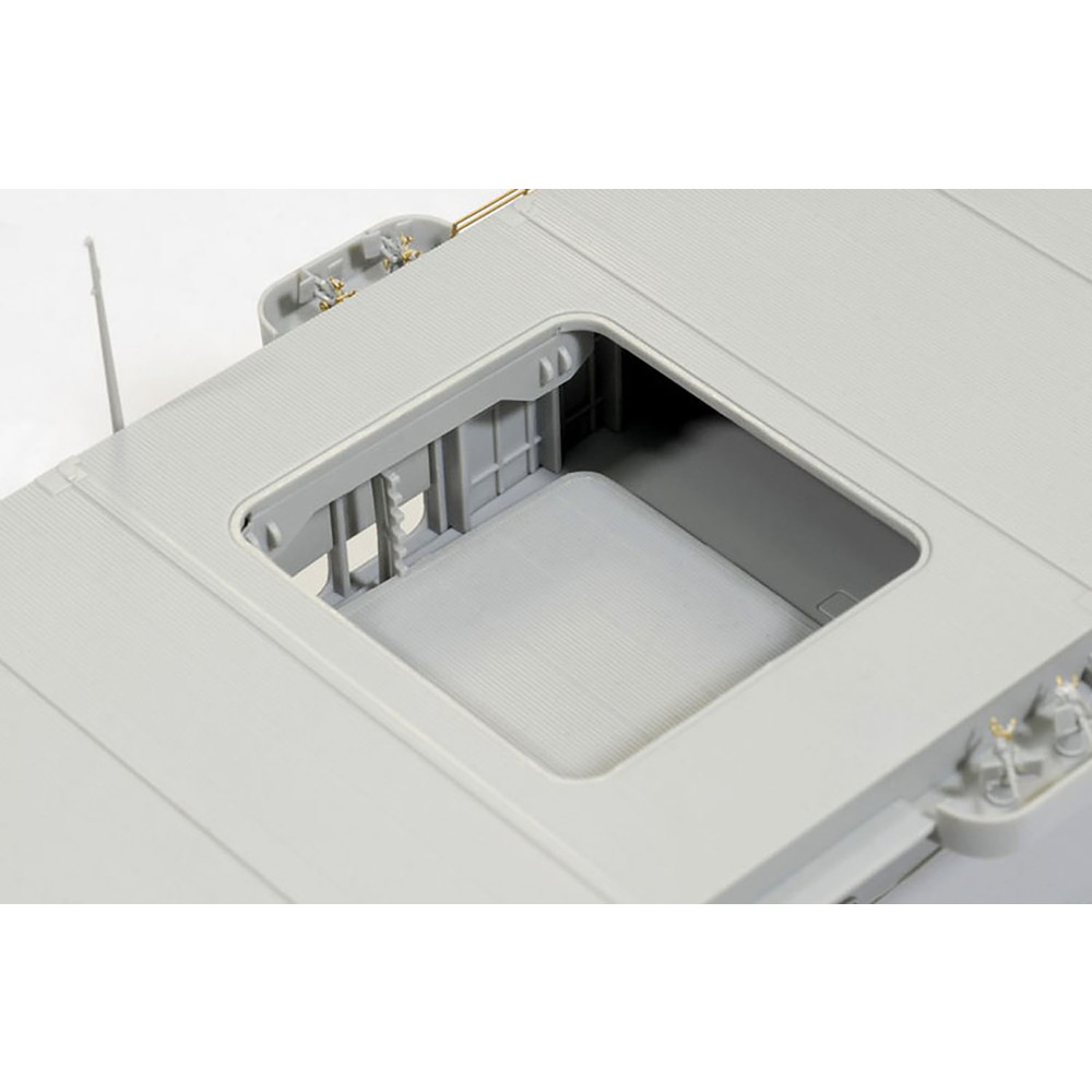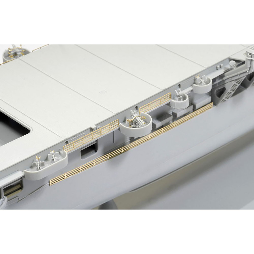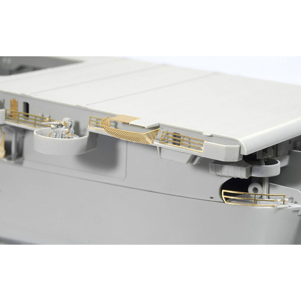 また、フライトデッキもスライド金型を使用して飛行甲板のディテールはもちろん、デッキ側面のハッチやドア、ホース類などのディテールまで一体で再現しています。